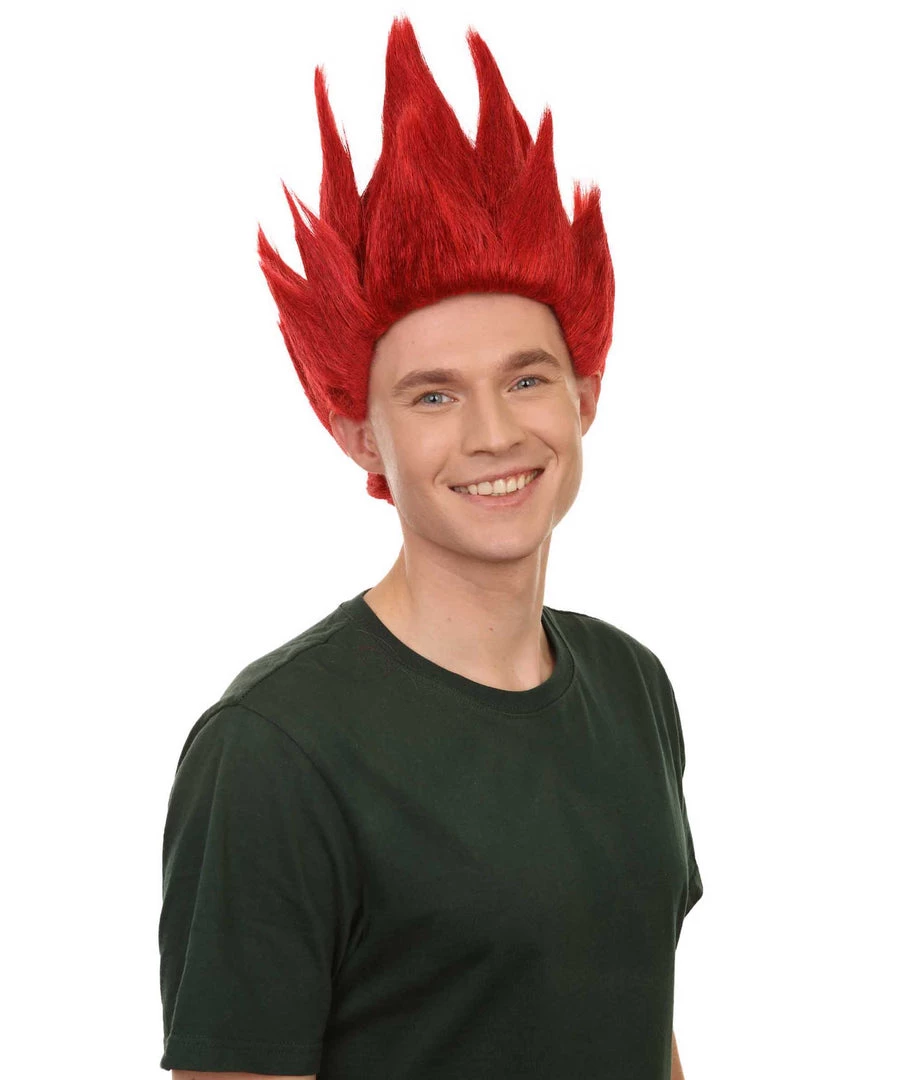 Adult Men’s Medium Length Halloween Cosplay Spiked Red Riot Costume Wig, Synthetic Soft Fiber Hair, Perfect For Your Next Anime Festival Or Convention | HPO