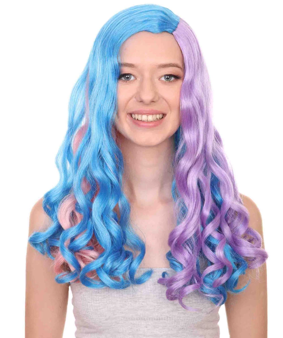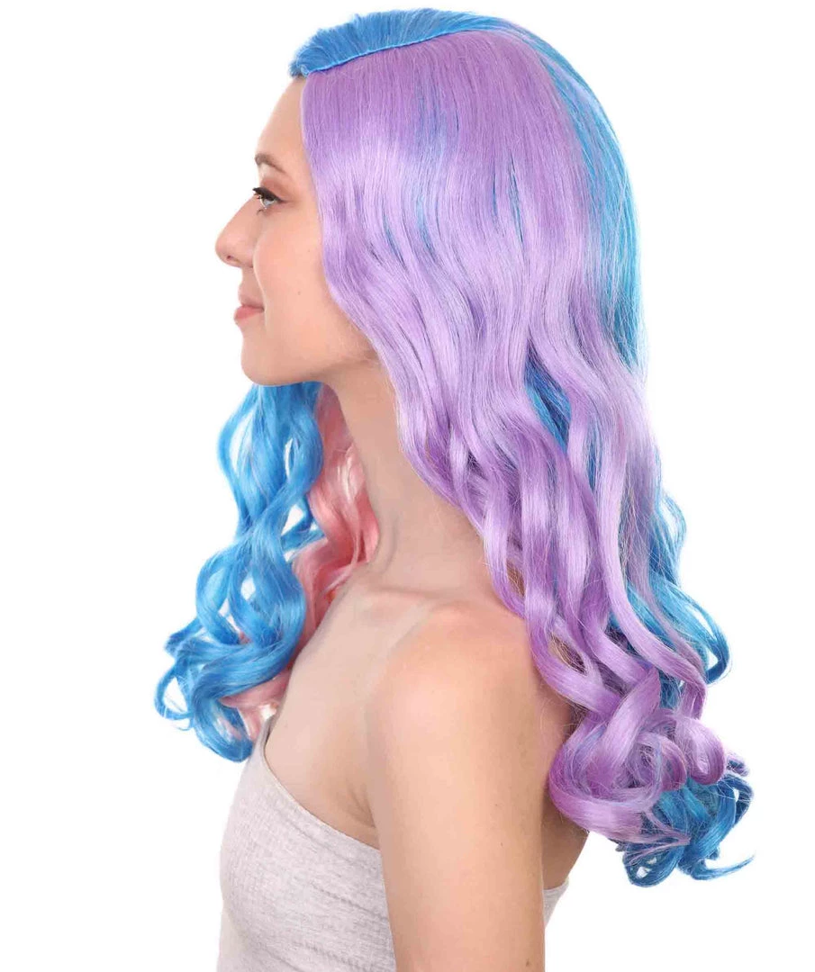 Adult Women’s 19 Inch Medium Length Wavy Halloween Anime Rainbow Mermaid Festival Wig, Synthetic Soft Fiber MultiColor Hair, Perfect For Your Next Party Or Cosplay Event | HPO