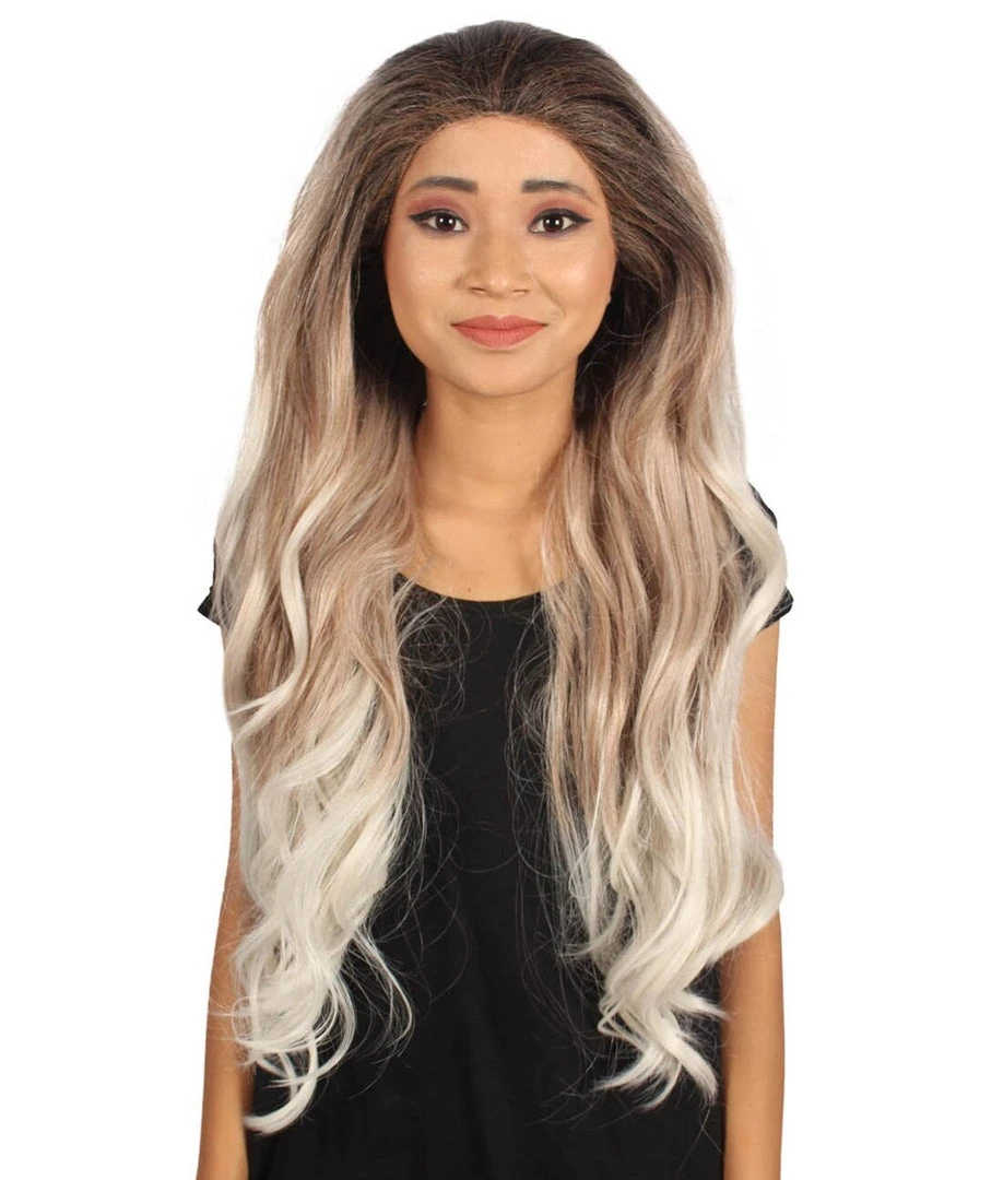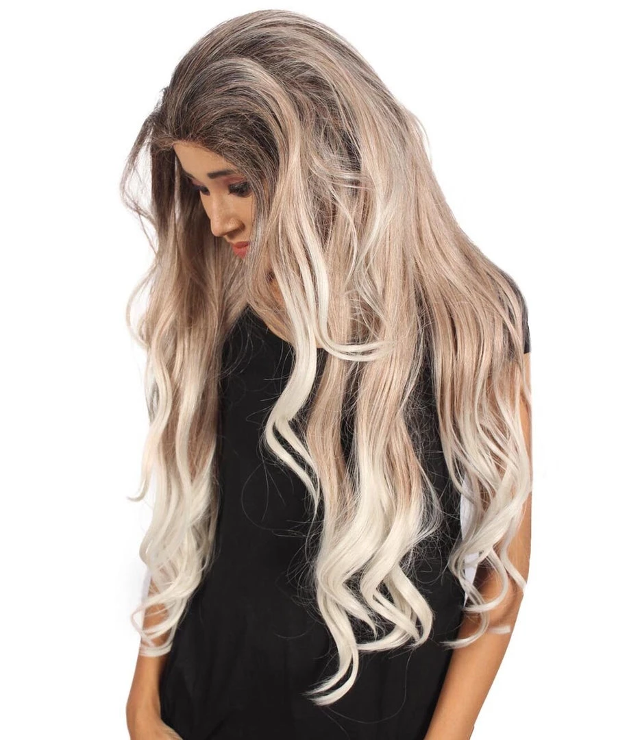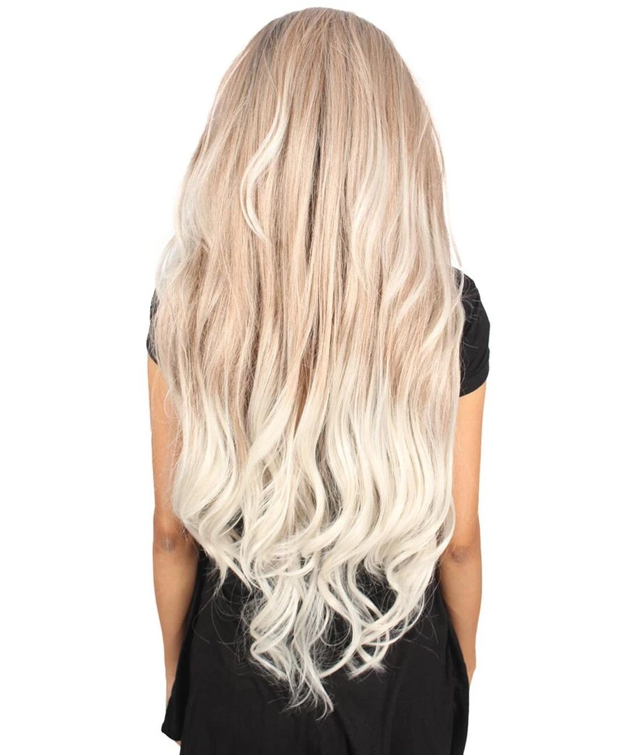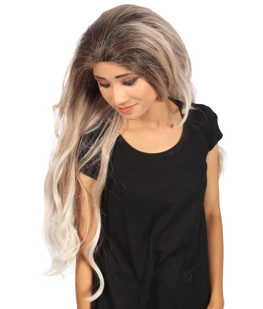 Beautiful long white wavy locks will get the band rolling and your rock and roll night going. Included is one head banging Long Length Lace Front Wavy Wig with Dark Top Bangs that is easy to wash but not easy to stop partying! Also could withstand flames up to 350 Degrees Fahrenheit, fire hydrant not included.
