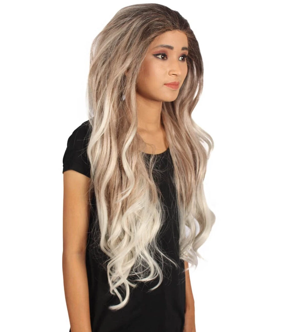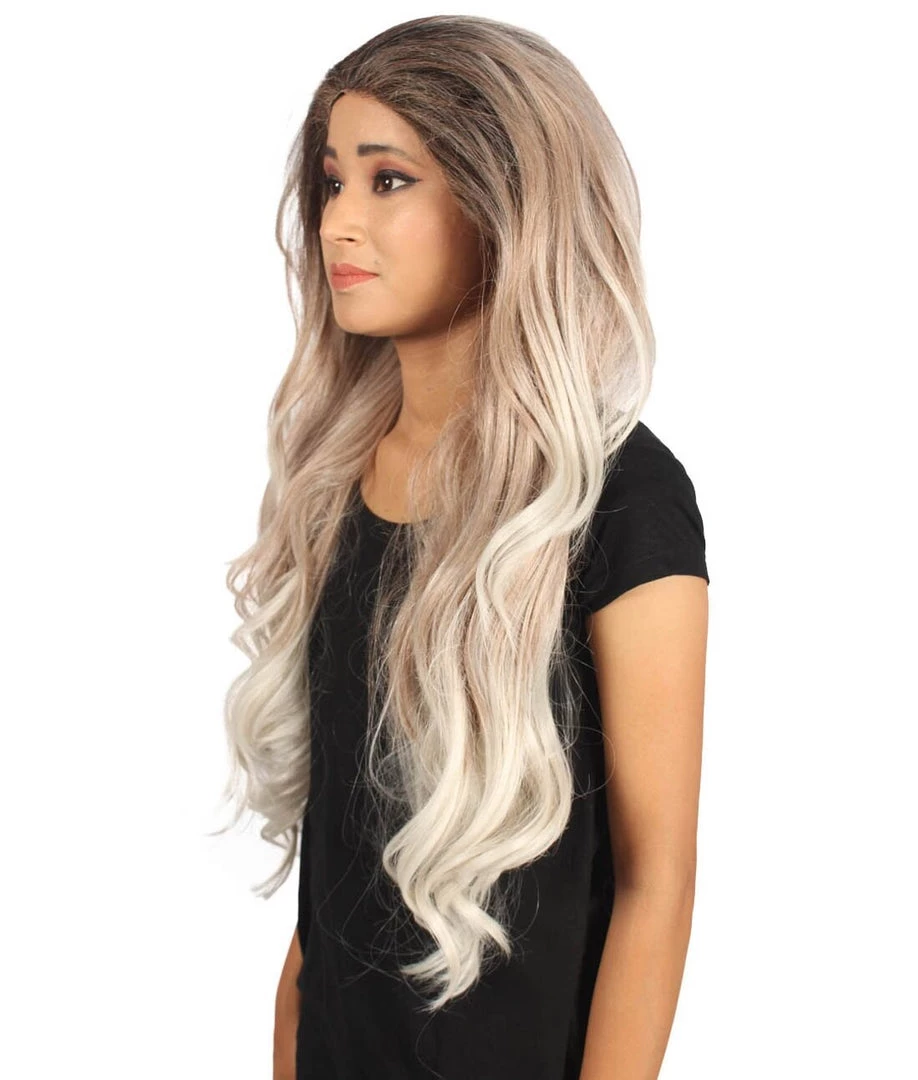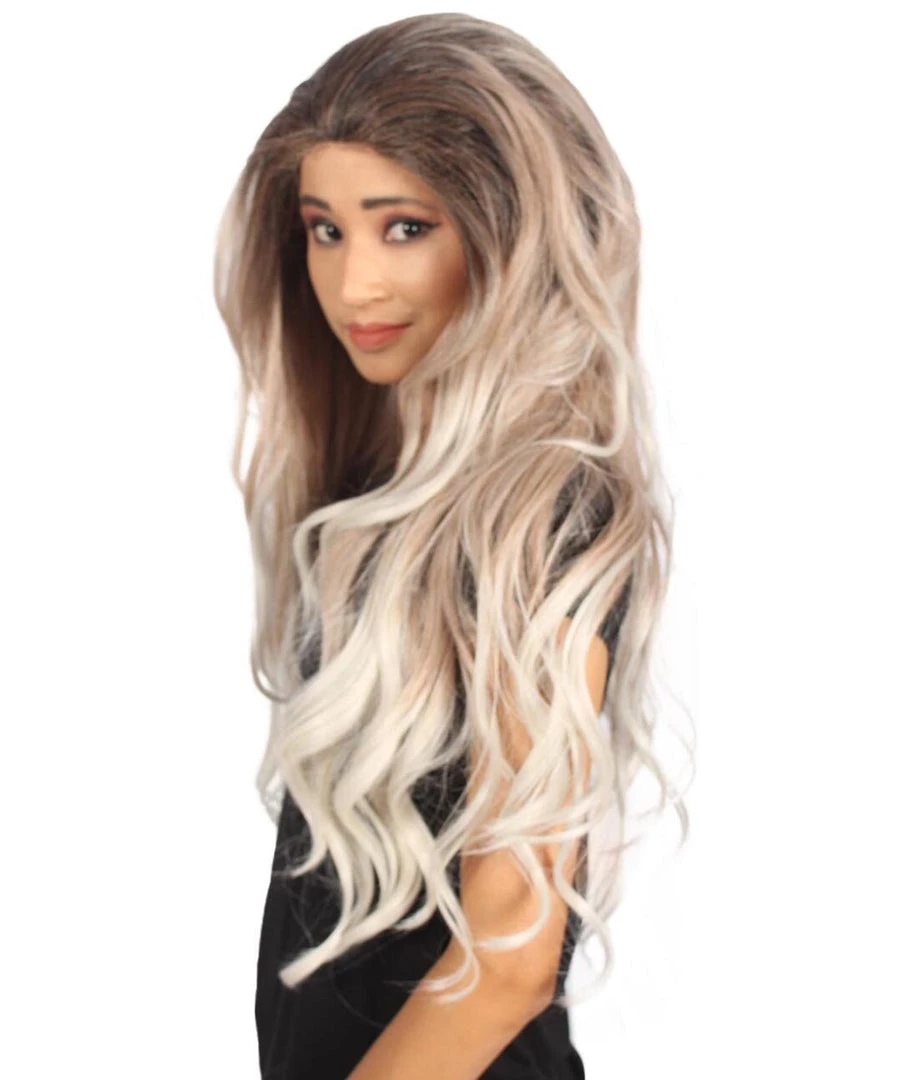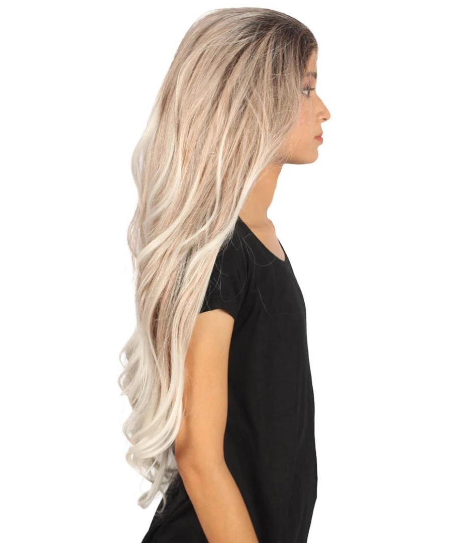Beautiful long white wavy locks will get the band rolling and your rock and roll night going. Included is one head banging Long Length Lace Front Wavy Wig with Dark Top Bangs that is easy to wash but not easy to stop partying! Also could withstand flames up to 350 Degrees Fahrenheit, fire hydrant not included.