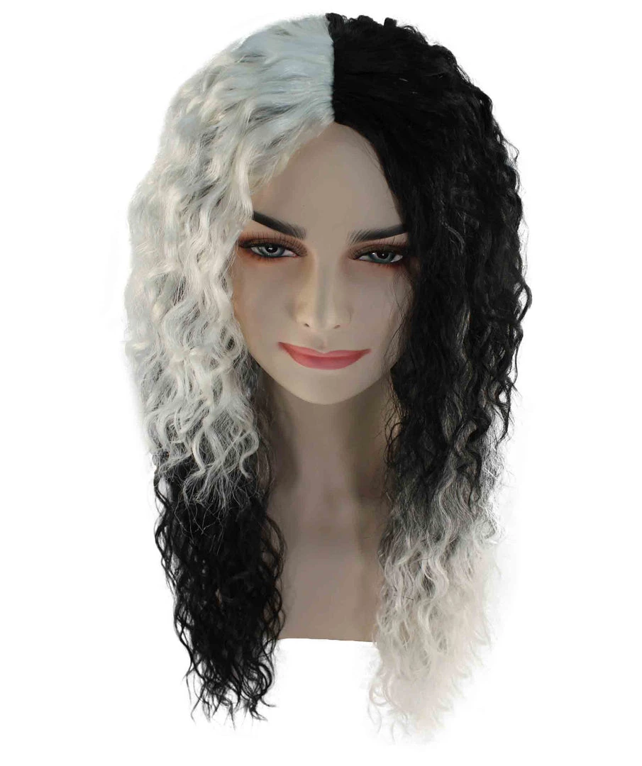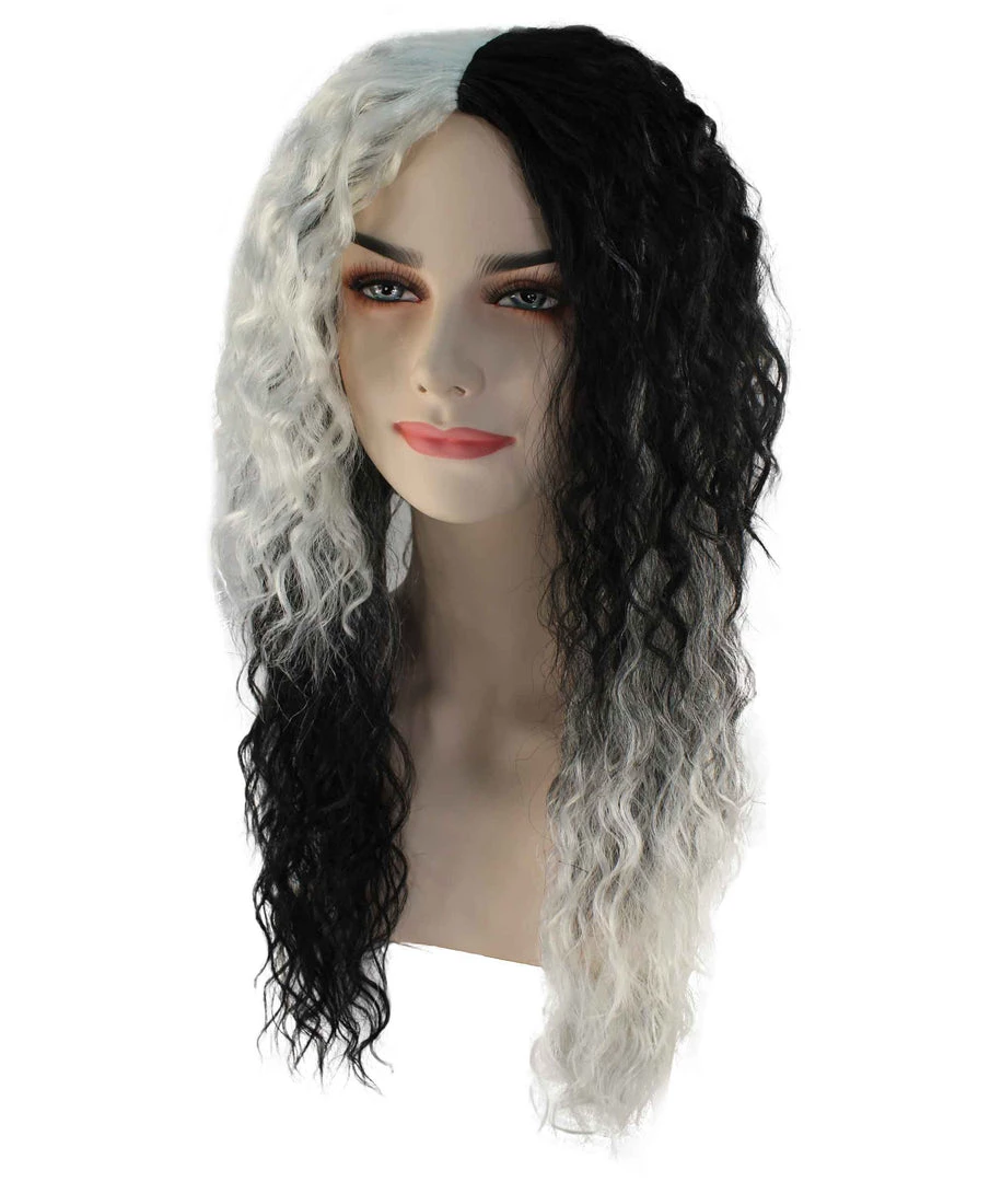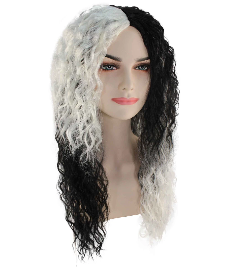 BC Adult Women’s Black And White Color Two Tone Curly Long Length Trendy Gothic Queen Wig