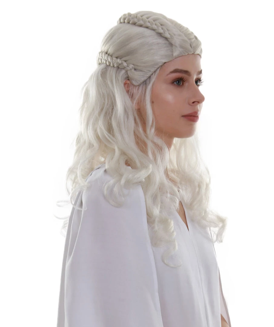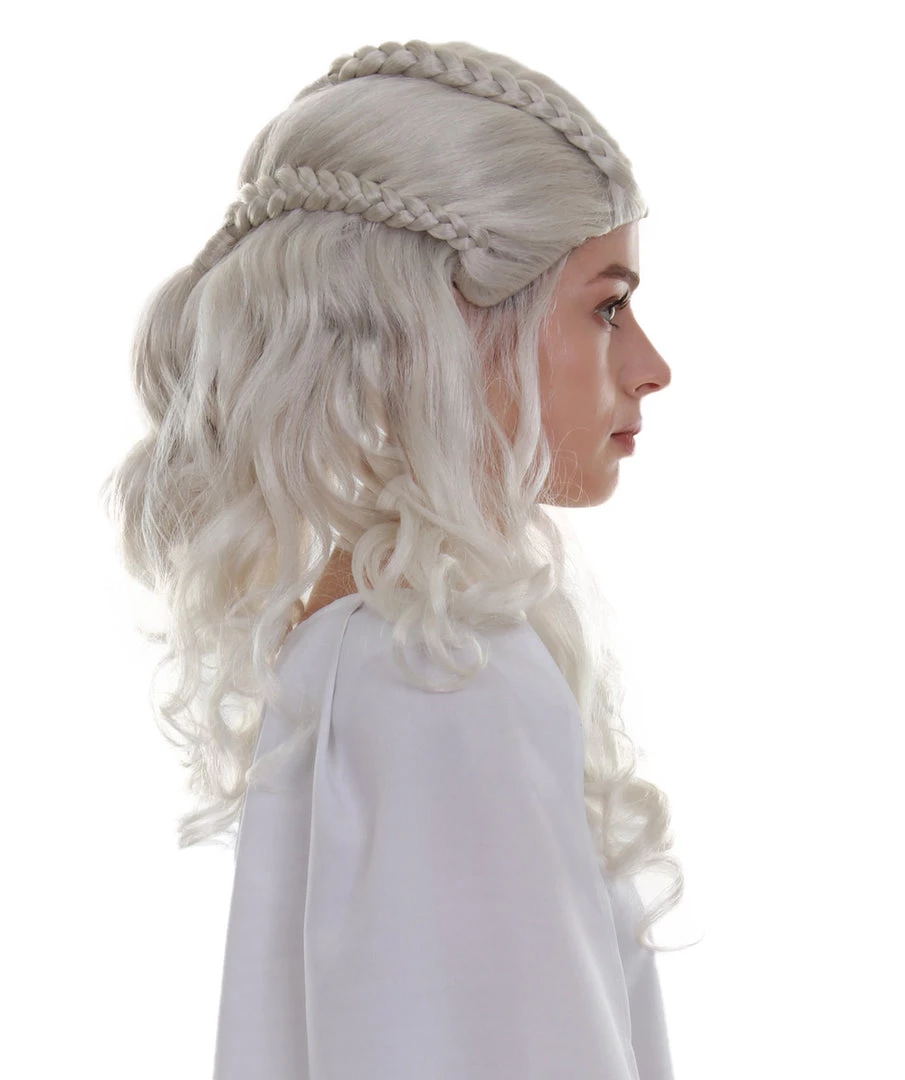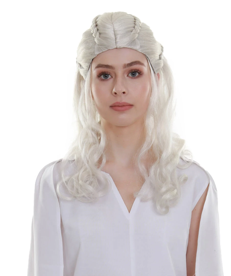 BC Women’s Snow White Color Curly Medium Length Pinned Up Trendy Wig