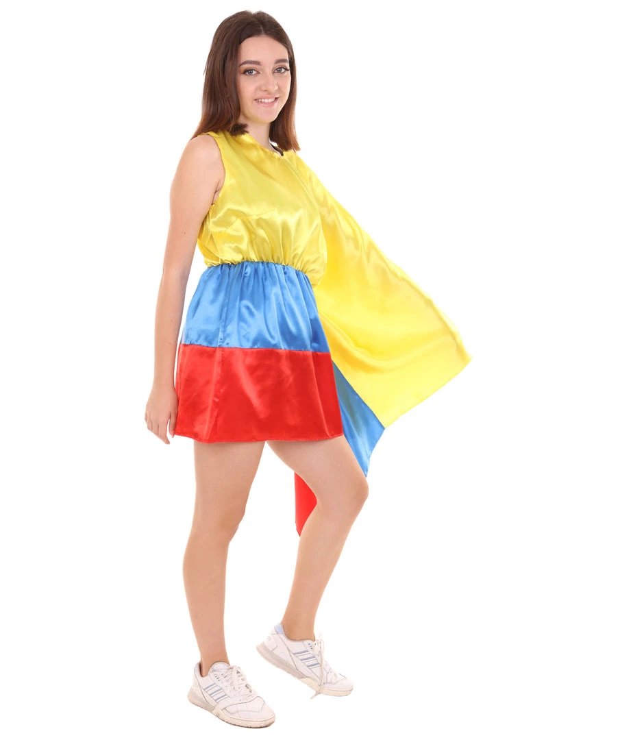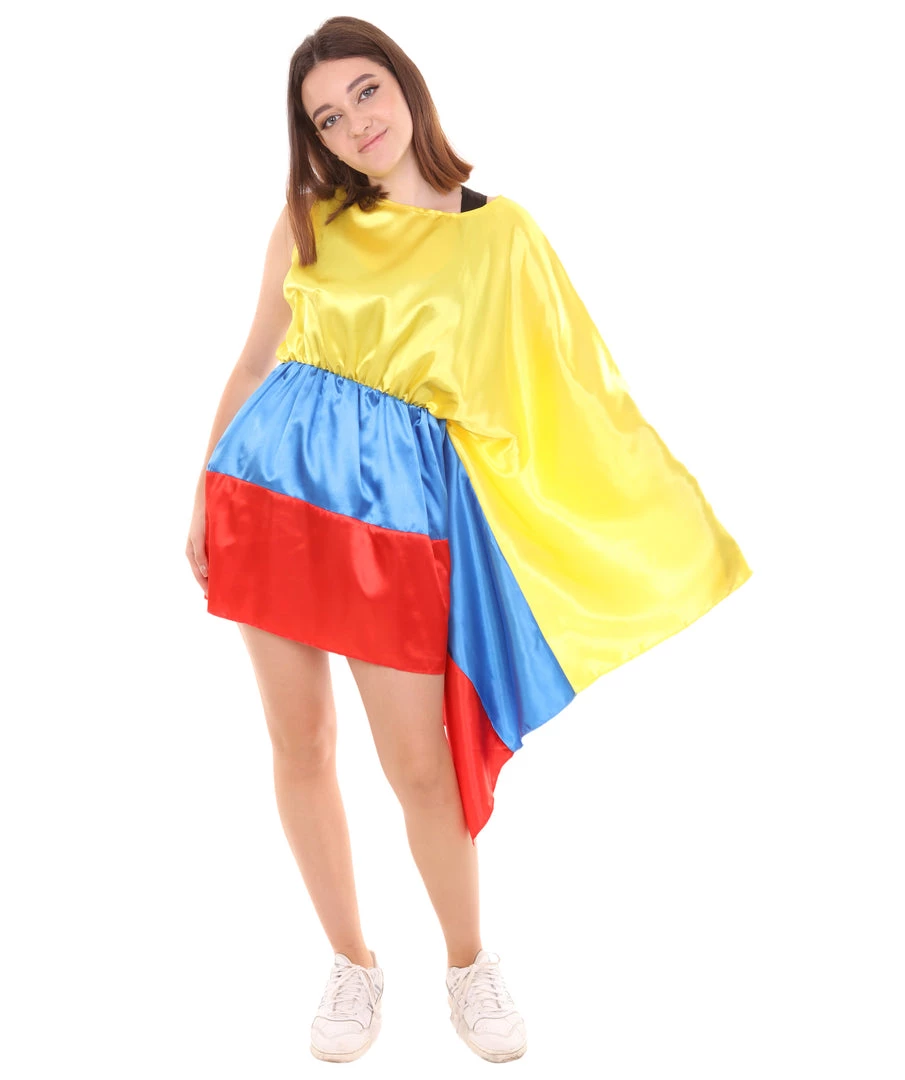 FLAGWIGS Adult Women’s Celebratory Colombian Flag Dress Costume | Patriotic Cosplay Costume