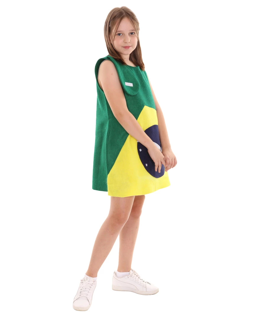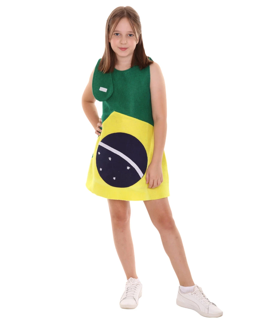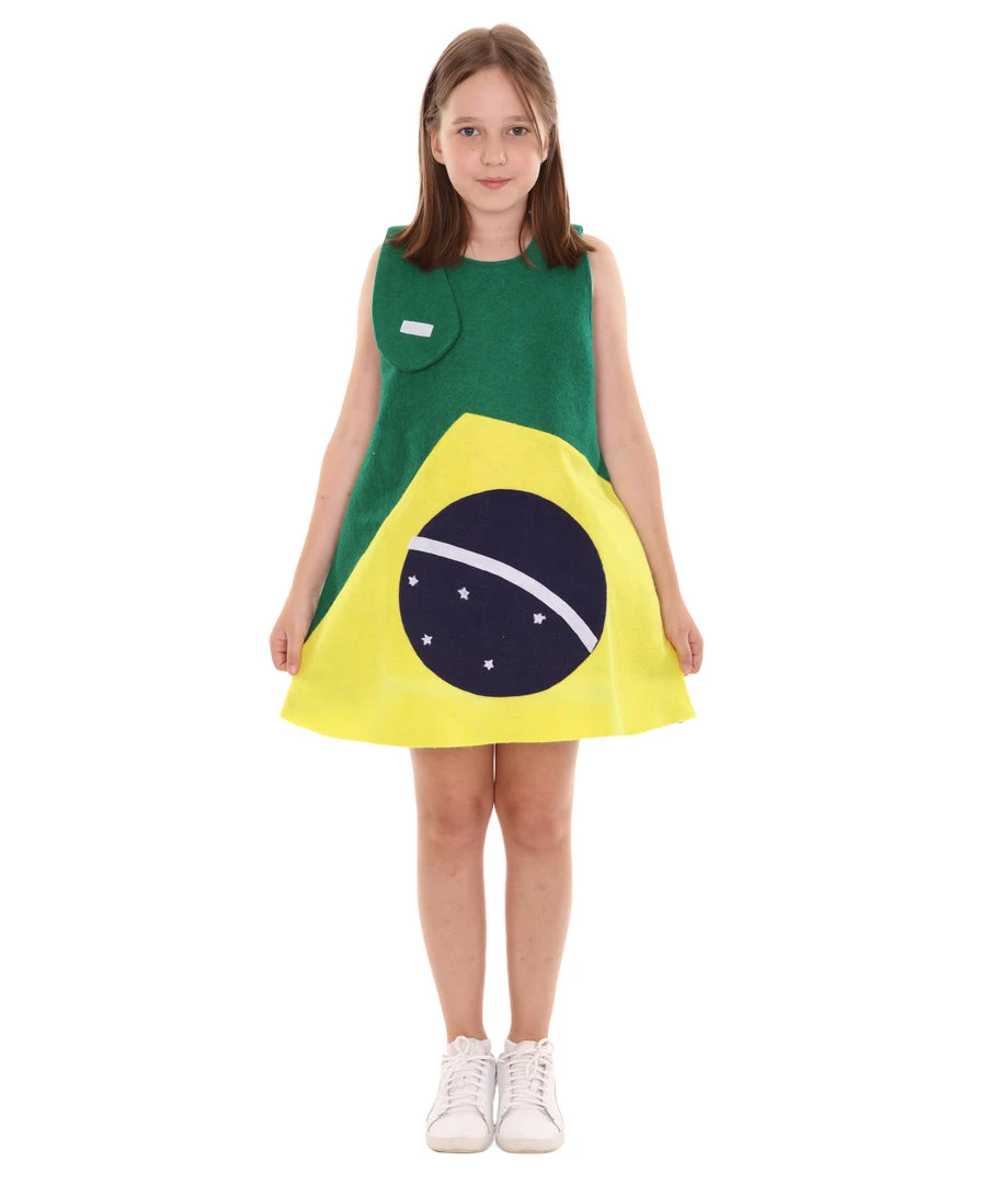 FLAGWIGS Kids Child’s Girl Patriotic Celebratory Brazilian Flag Troll Dress Costume | Patriotic Cosplay Costume