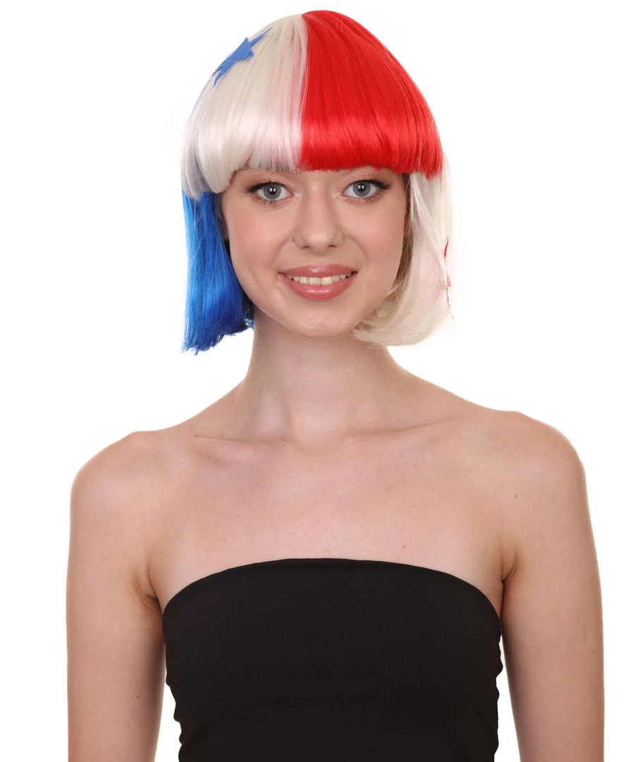 FLAGWIGS Panama Flag Sport Party Bob Wig | National Pride Red White Blue Wig | Premium Breathable Capless Cap Women’s
