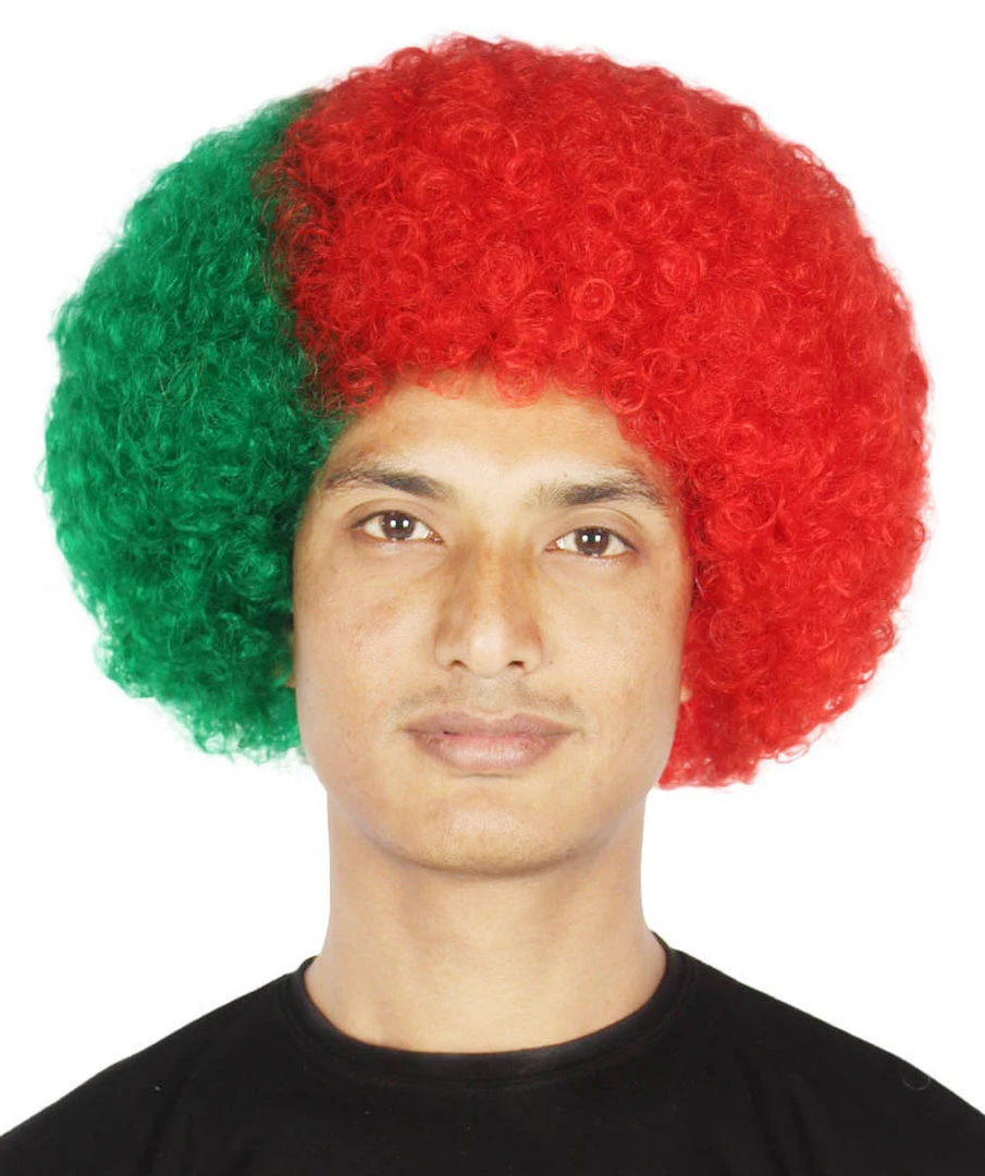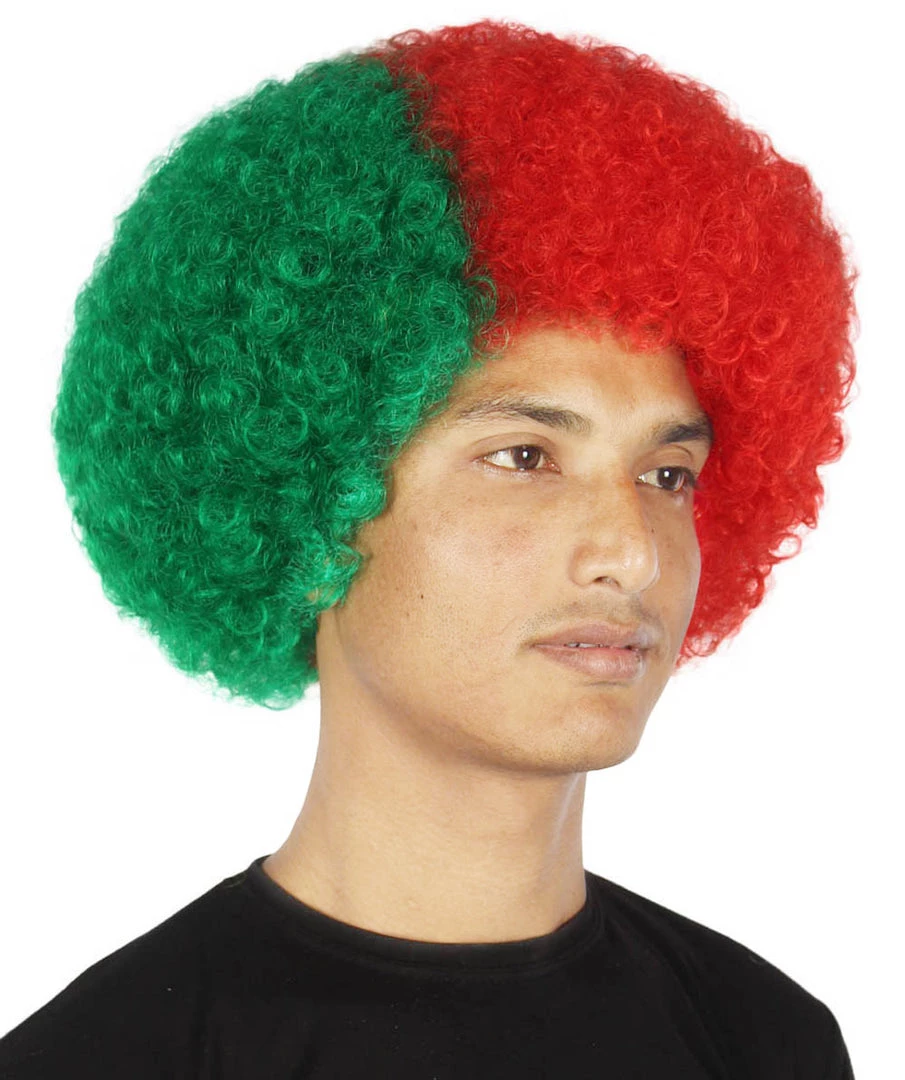 FLAGWIGS Portugal Sport Afro Fun Wig | Red Green Cosplay Halloween Wig SALE