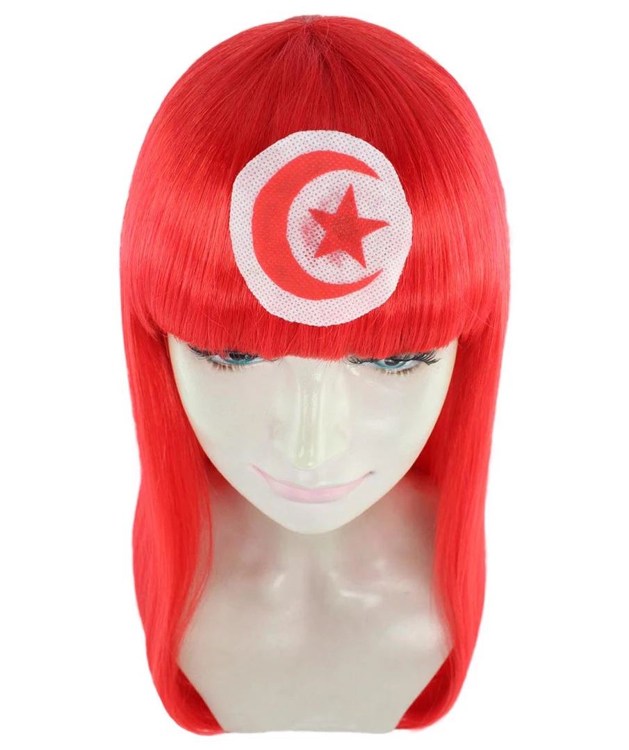 FLAGWIGS Tunisia Flag Sport Party Long Bob Wig | Premium Breathable Capless Cap