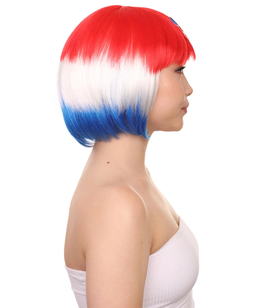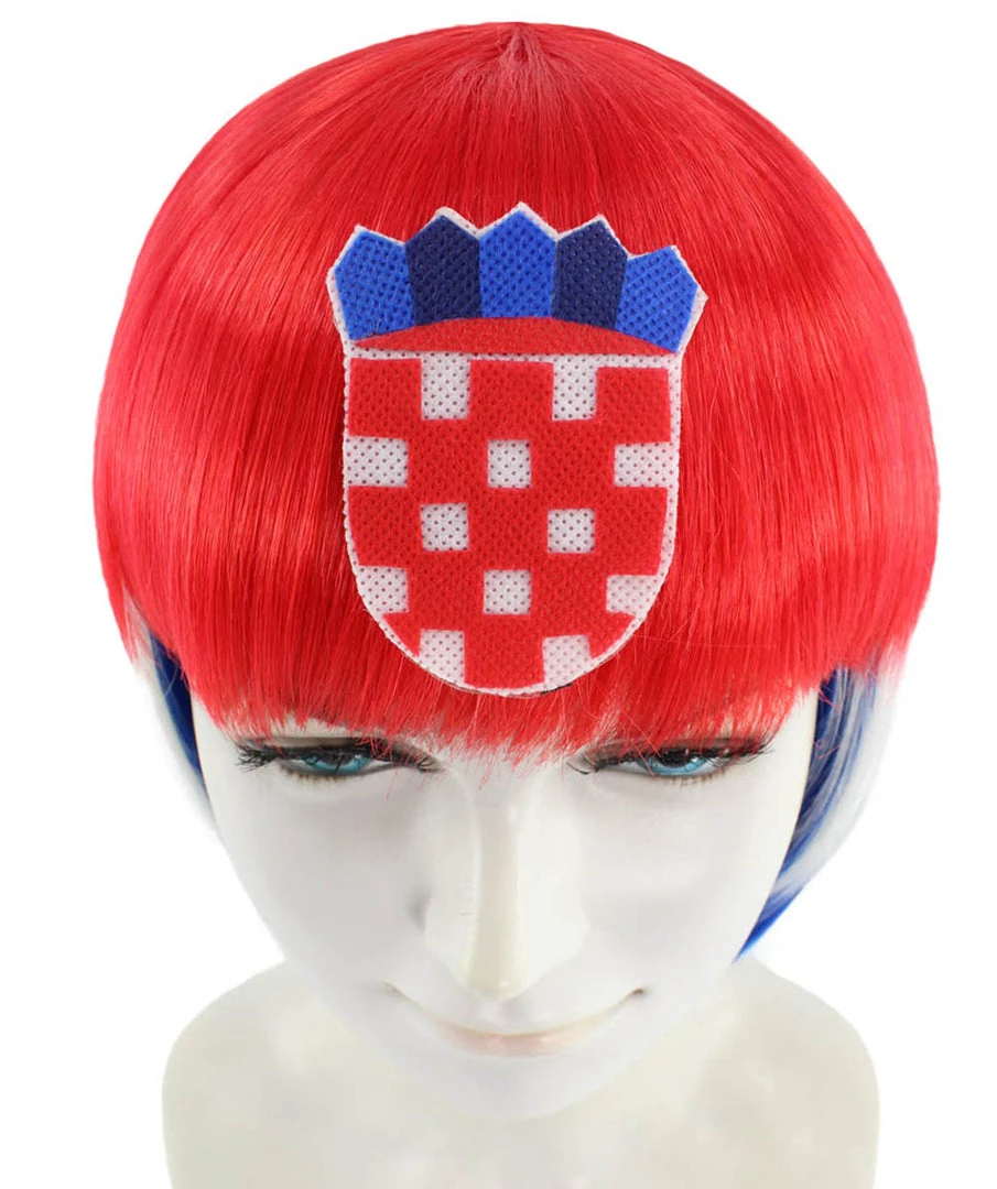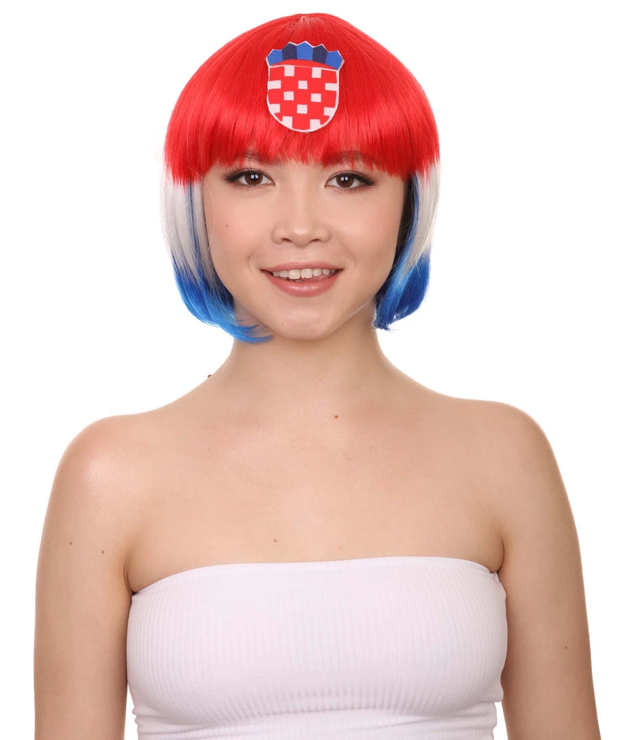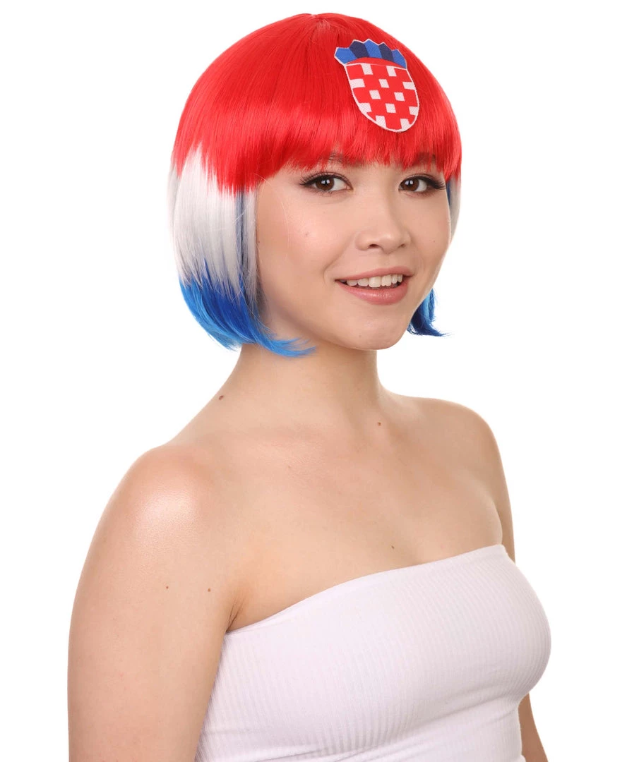 FLAGWIGS Women’s Women Patriotic Croatia Flag Wig | Bob Wig | Premium Breathable Capless Cap