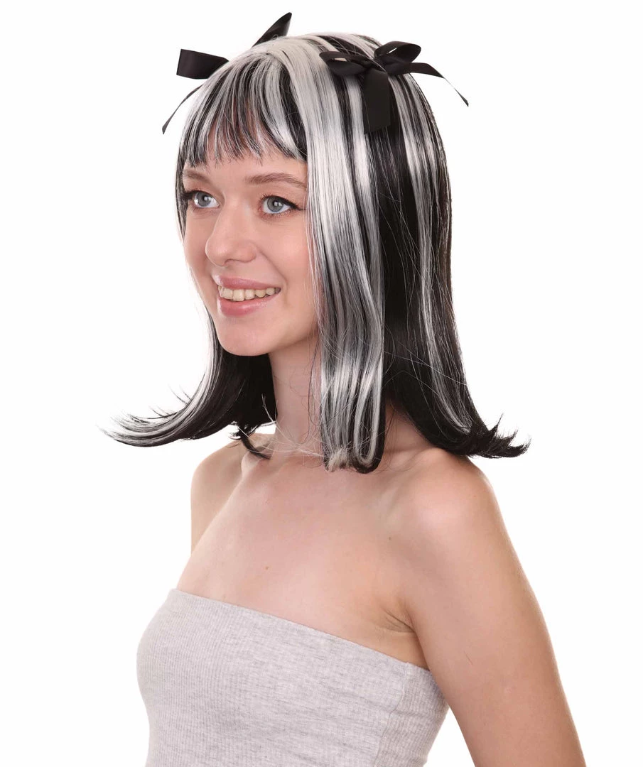 HalloweenPartyOnline Men’s Womens Ghostly Zombie Wig With Ribbons | Two Tones Black And Grey Scary Wigs | Premium Breathable Capless Cap