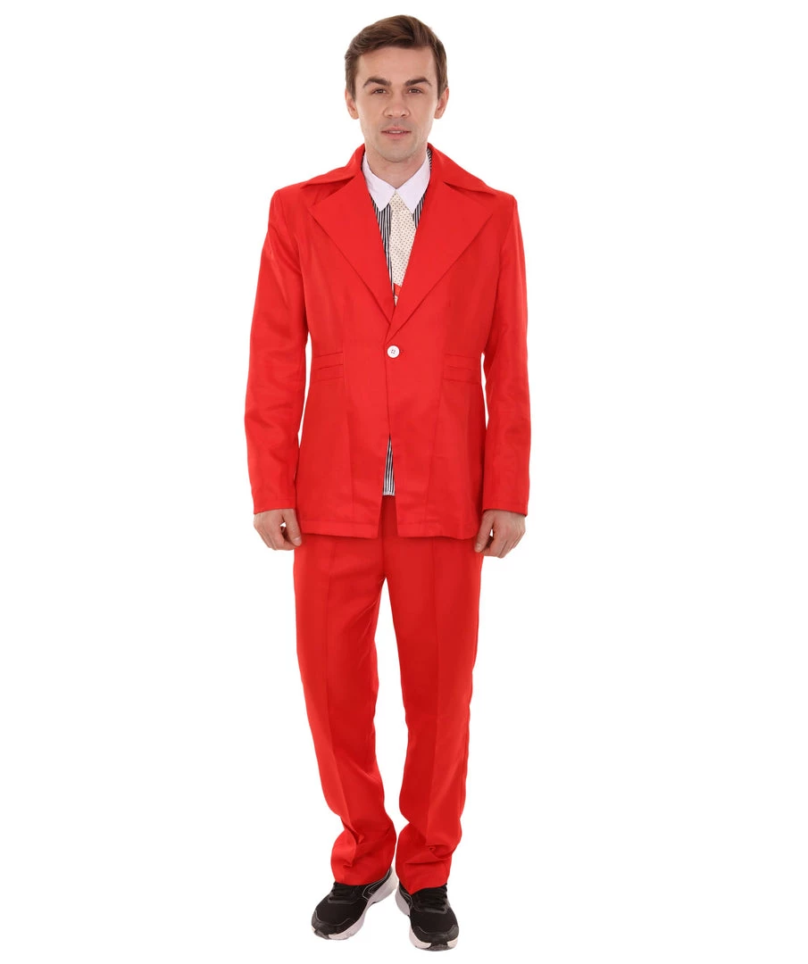 This costume is inspired by one of the most influentian musicians of the 20th century, whose innovative work with reinvention and aesthetics earned him the reputation as the GOAT of glam rock. Celebrate the 70’s in style with this rockstar costume that makes imitating glam rock’s most iconic figure a breeze. This package includes a shirt, tie, and an aladdin-blue jacket and pant combo. Pair with our orange mullet wig to tie this look together, or get creative and go as a rockstar from your imagination!