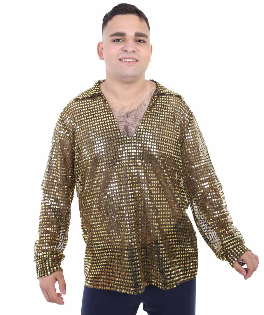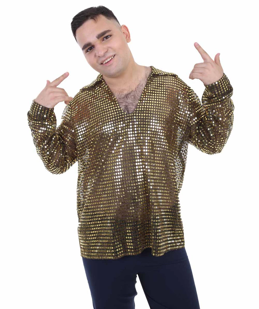 HPO Adult Men’s 70’s Disco Gold Sequin Shirt Costume | Golden Cosplay Costume