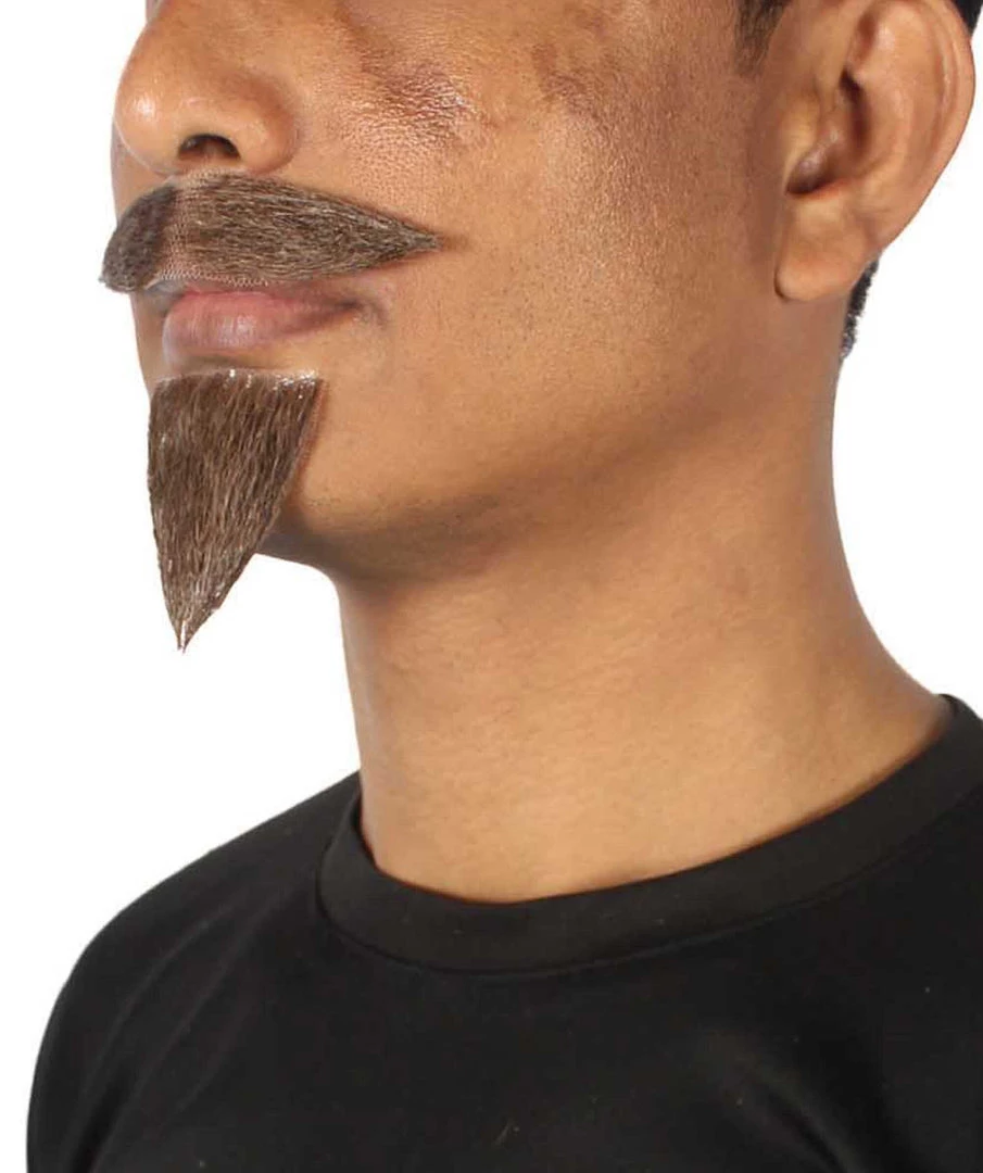 HPO Adult Men’s Fake Human Hair Napoleon Holiday Doc Mustache Goatee | Brown