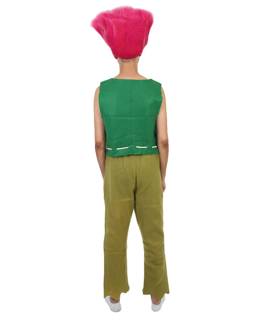 Don’t let his old age fool you – this peppy king is the bravest troll in all the land. He uses his love for pop music to protect his happy-go-lucky land and makes sure to never leave a single troll behind! He may be a little scatterbrained in his old age, but if heever misplaces anything, it’s usually because it’s stuck in his hair. This green vest and beige pant combination will embody his sweet look and intimidating strength. Make sure to complete your peppy king costume with our king troll wig to imitate his frazzled and fluffy pink hairdo that also comes with eyebrows and a mustache to match. Be prepared to get extroll-ordinary attention wearing this at your next Halloween or costume party!