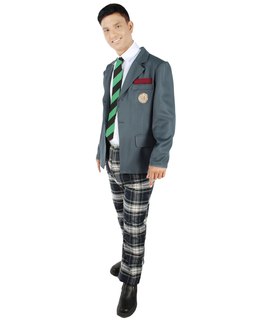 Loved the Korean zombie show where a group of school students get stuck inside their school premises after an abominable zombie outbreak? This awesome character is a skilled fighter who wishes to join the army one day. Mimic his look from this highly acclaimed Korean zombie drama with our new school uniform costume bundle that includes a grey blazer, tie, pants, and a bloodstained white shirt. Perfect for Halloween or any cosplay convention, wear your hair like the character or choose a wig from our collection for the perfect result! Our costumes are designed to emphasize every detail.