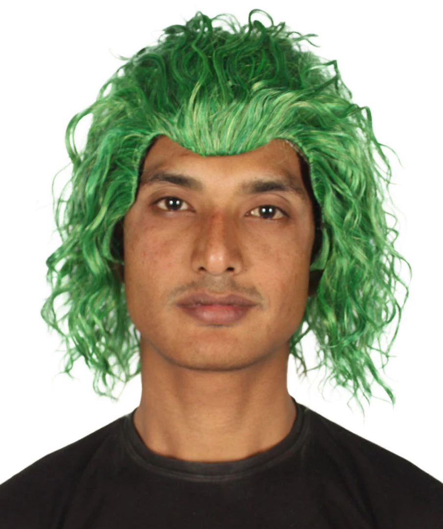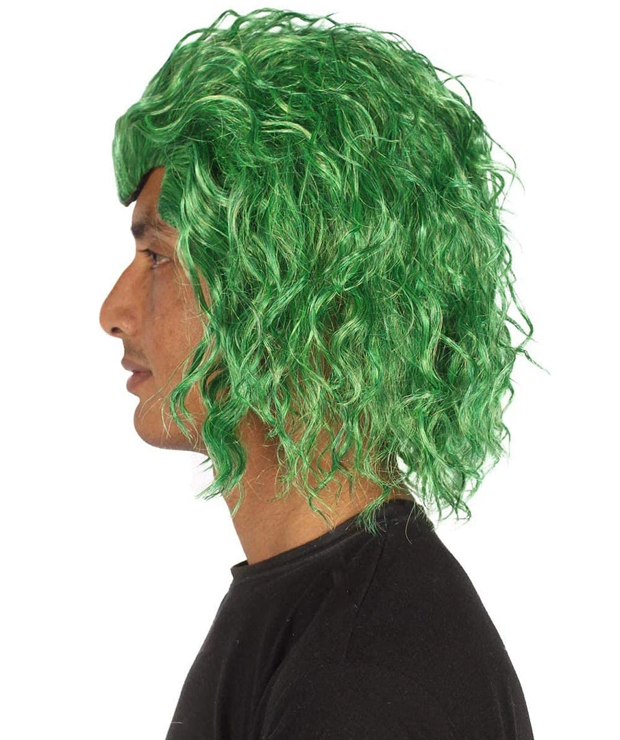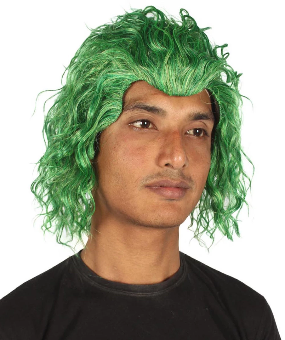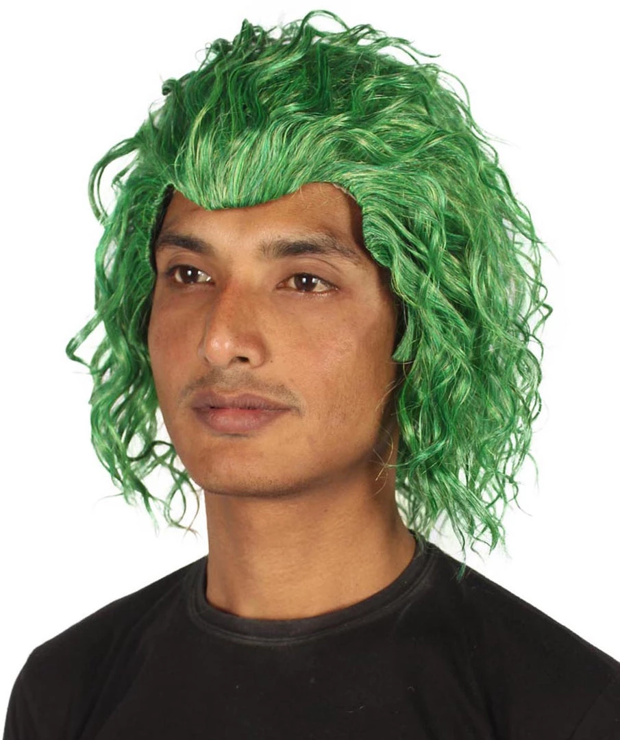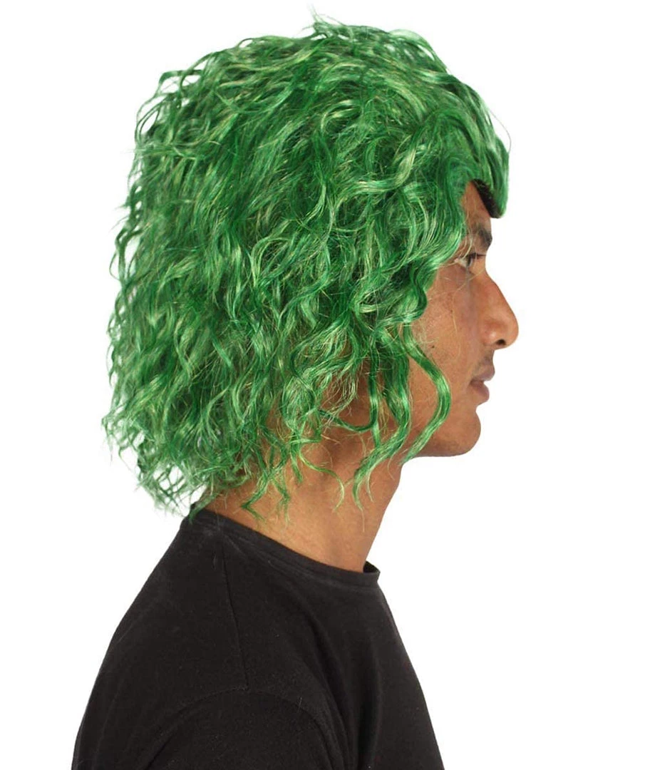 HPO Adult Men’s TV Wig | Green Curly Cosplay Wig | Premium Breathable Capless Cap