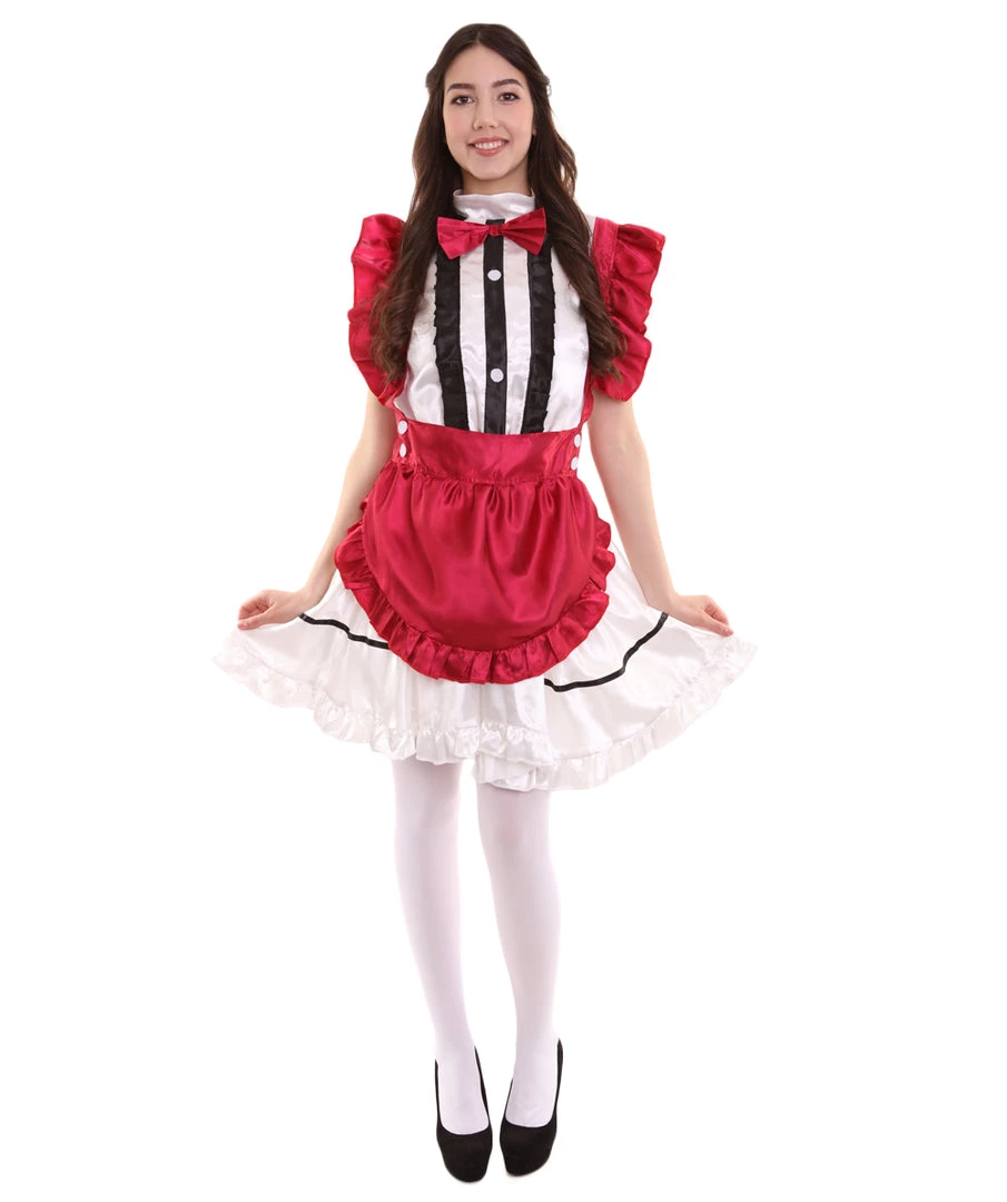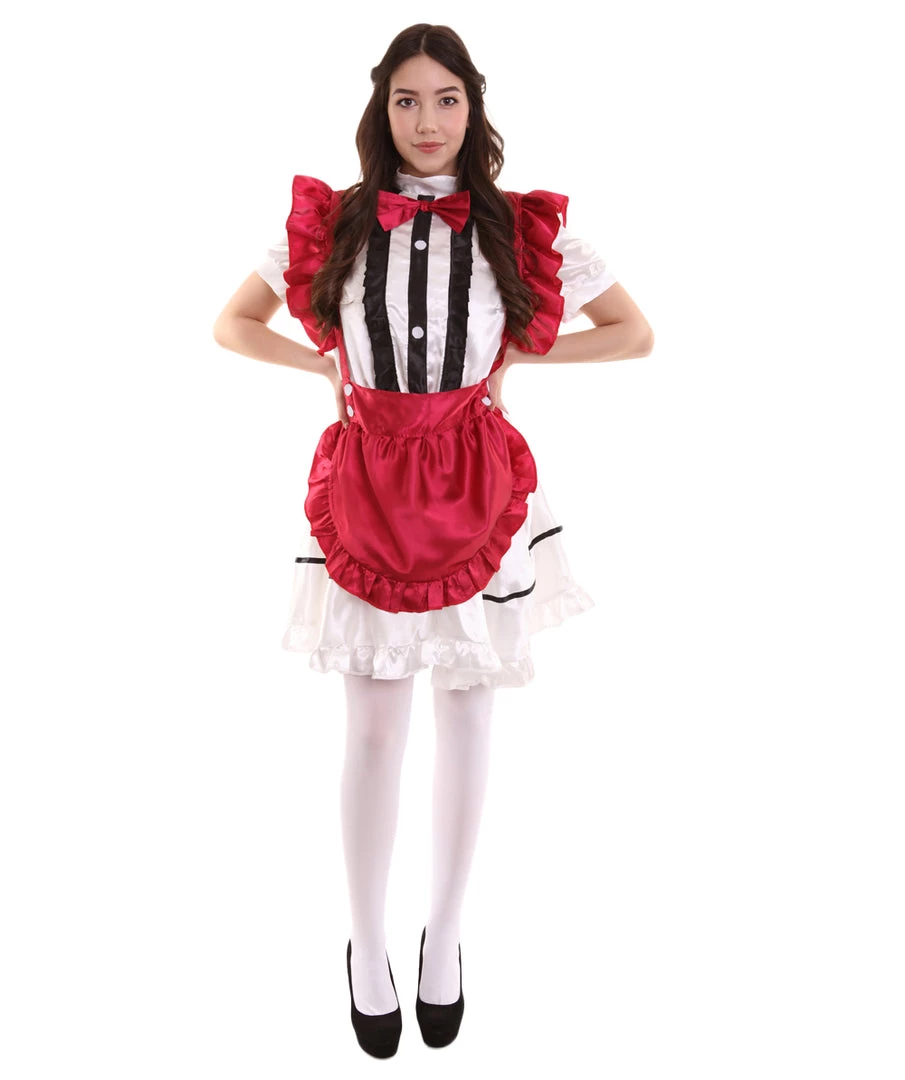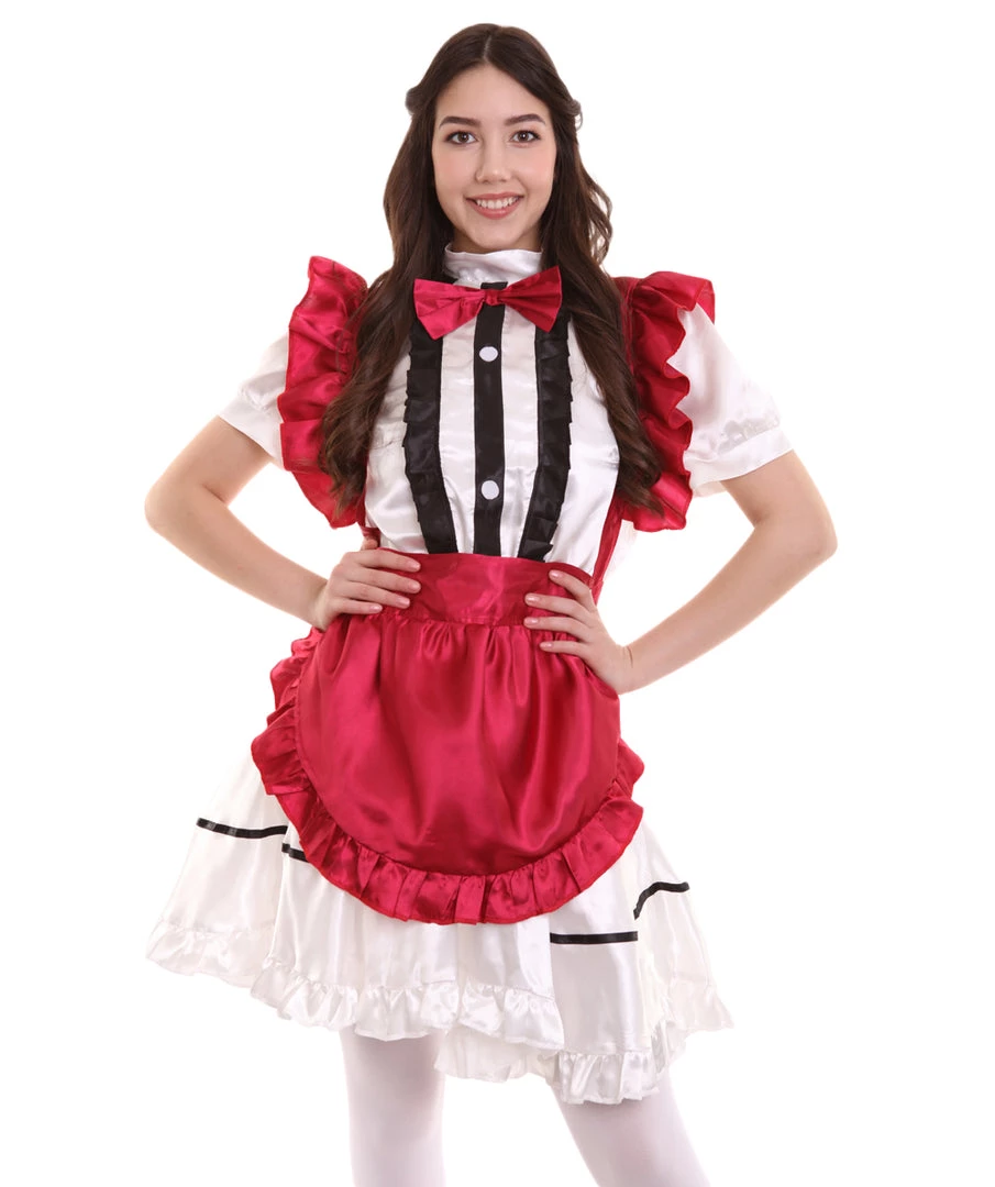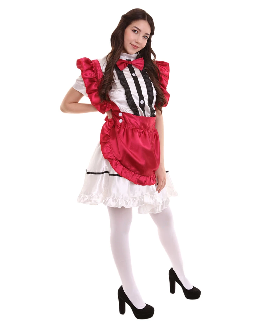 HPO Adult Women’s Anime Cosplay French Maid Fancy Uniform Costume | Dark Red Cosplay Costume