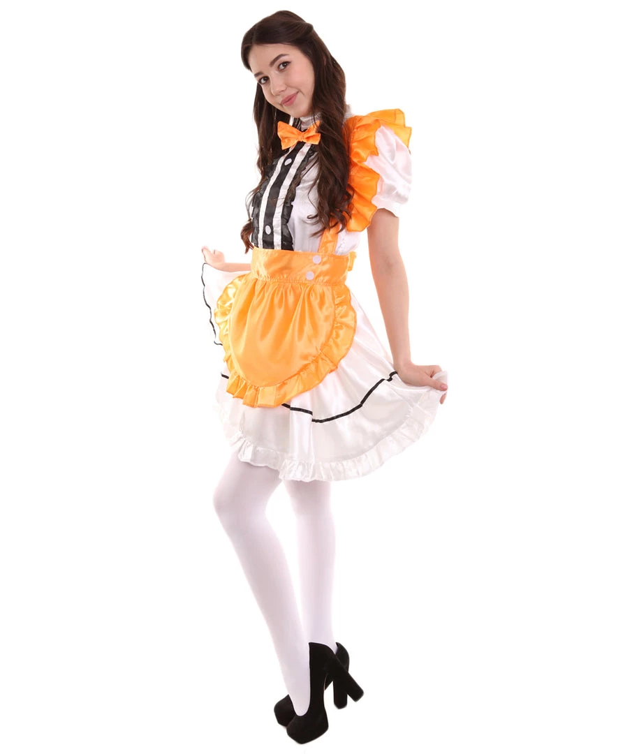 HPO Adult Women’s Anime Cosplay French Maid Fancy Uniform Costume | Orange Cosplay Costume