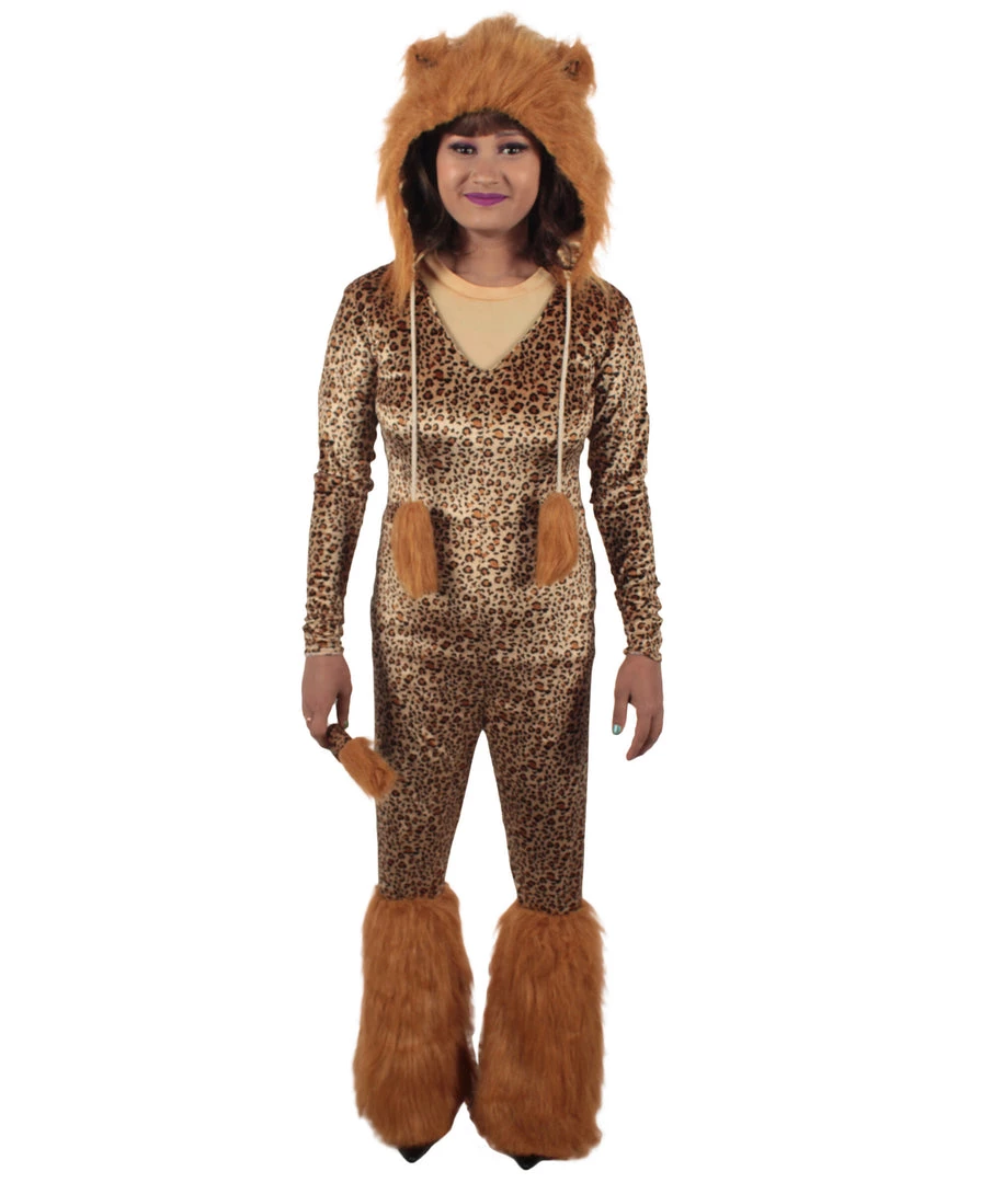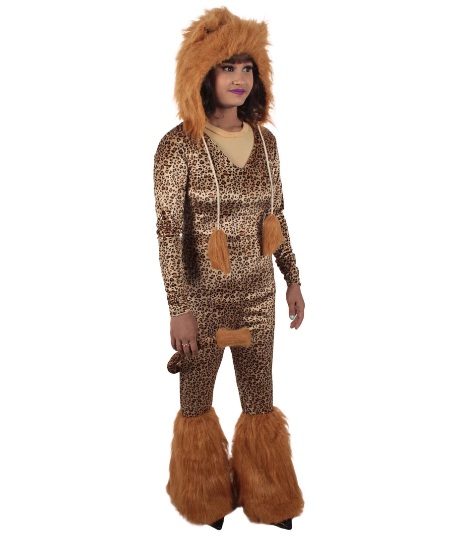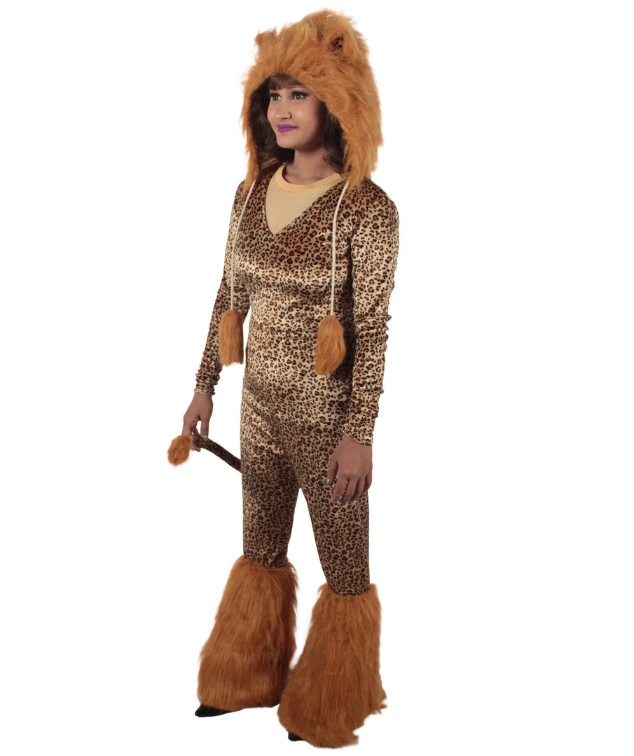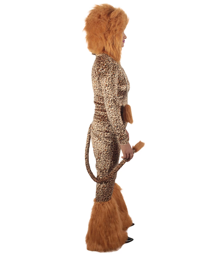 HPO Adult Women’s Brown Jumpsuit Lion Costume Bundle