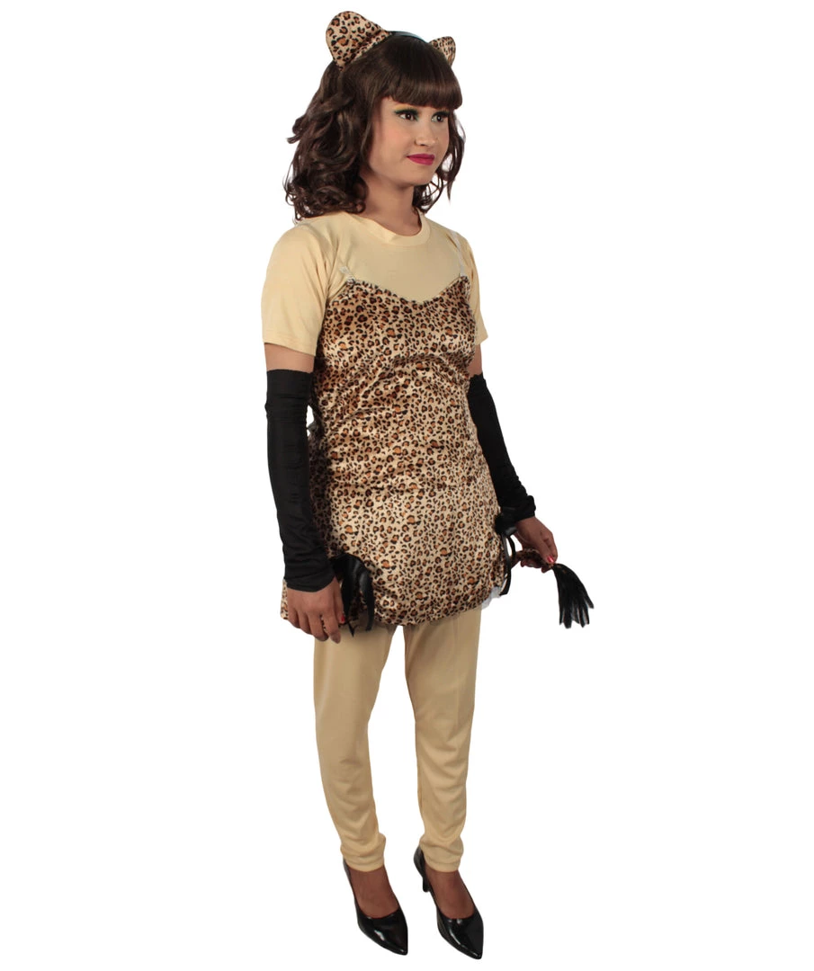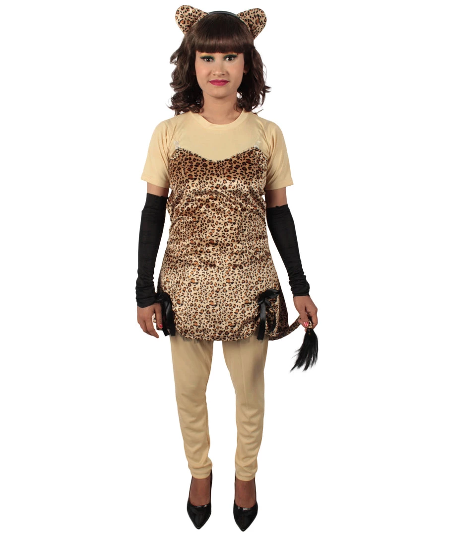 HPO Adult Women’s Brows Leopard Costume Bundlen And Black Dres