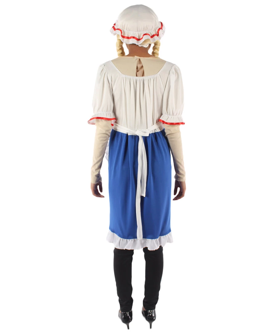 HPO Adult Women’s Cheerful Rag Doll Storybook & Fairytale Costume | Blue & White Cosplay Costume