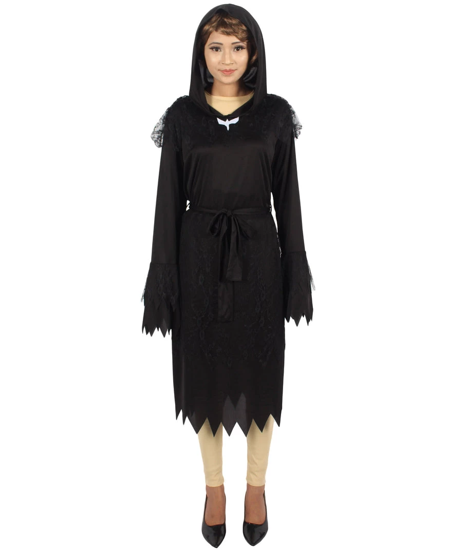 HPO Adult Women’s Cloak Of Darkness 2Pc Costume | Black Halloween Costume