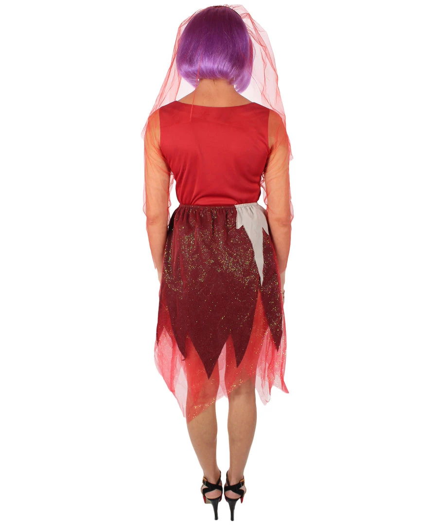 This decomposing bride is one of the most iconic holiday characters. She comes back to “”life”” in her strapless dirt-stained wedding dress, and now you can imitate her look at your next Halloween or costume party! Our costume bundle comes with a dark stained wedding dress and a headpiece to coplete the look. Made with breathable synthetic fabric, this costume will last through your lifetime AND the afterlife!