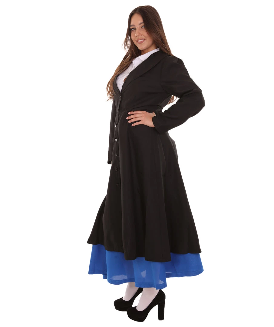 HPO Adult Women’s English Nanny Marry TV/Movie Costume | Black & Blue Cosplay Costume