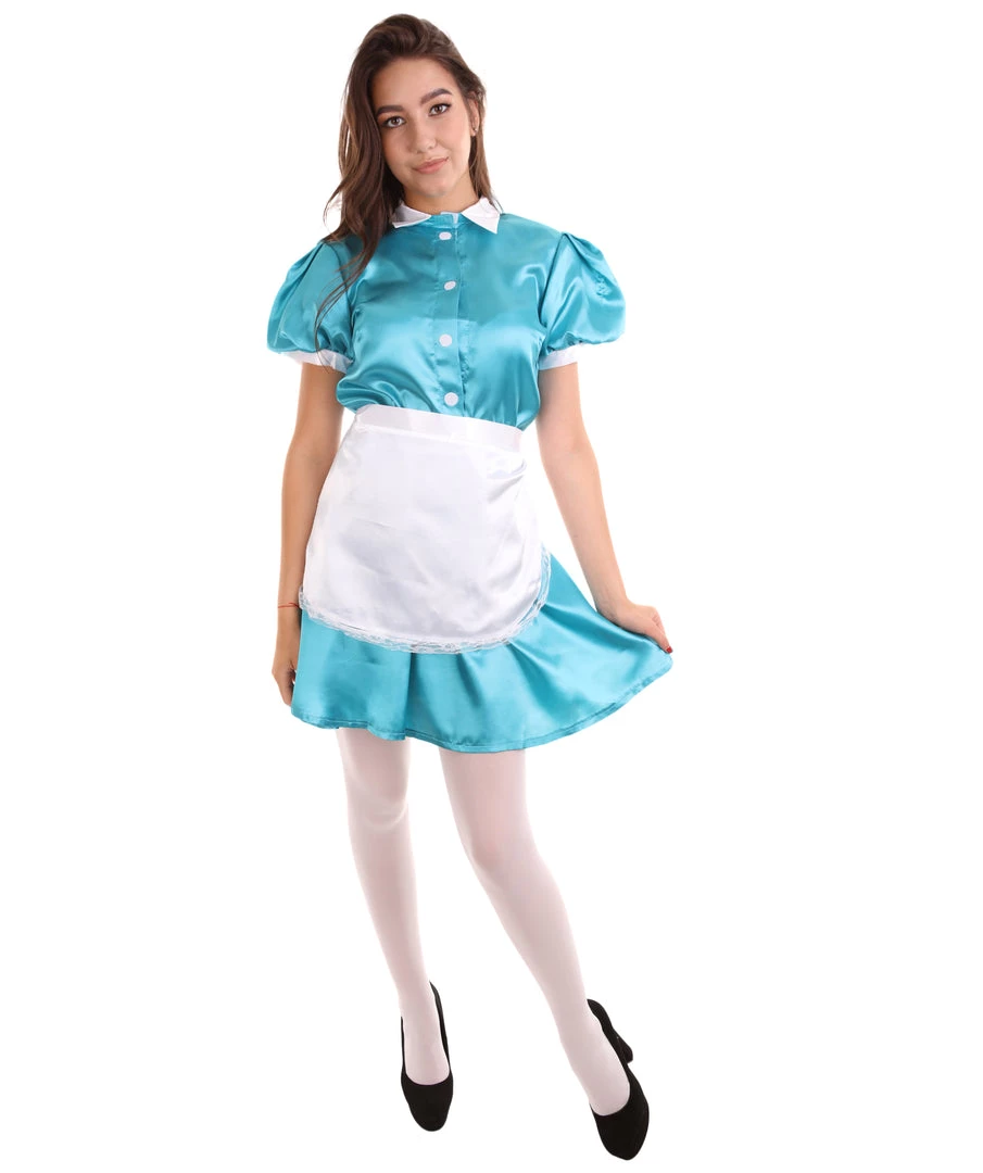 HPO Adult Women’s French Apron Maid Uniform Costume | Aqua Blue Cosplay Costume
