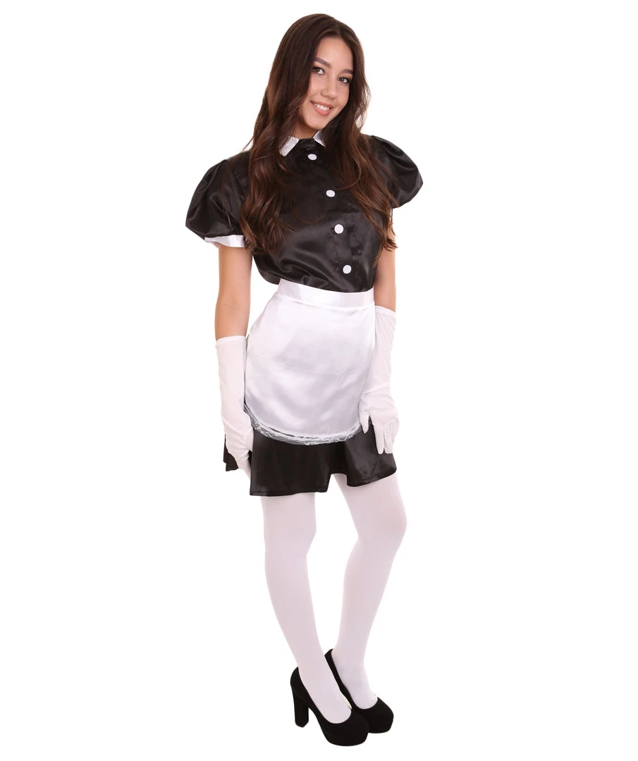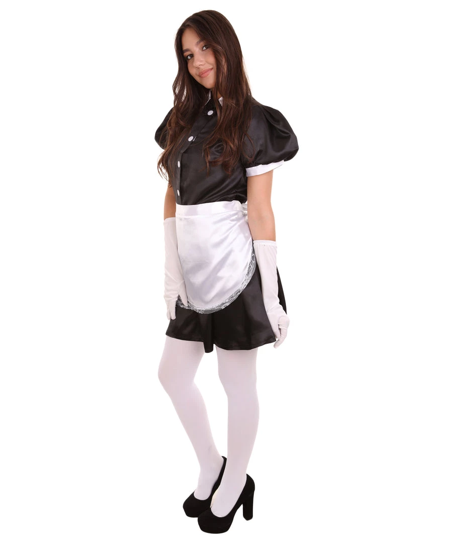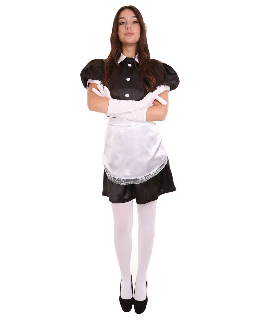 HPO Adult Women’s French Apron Maid Uniform Costume | Black Cosplay Costume