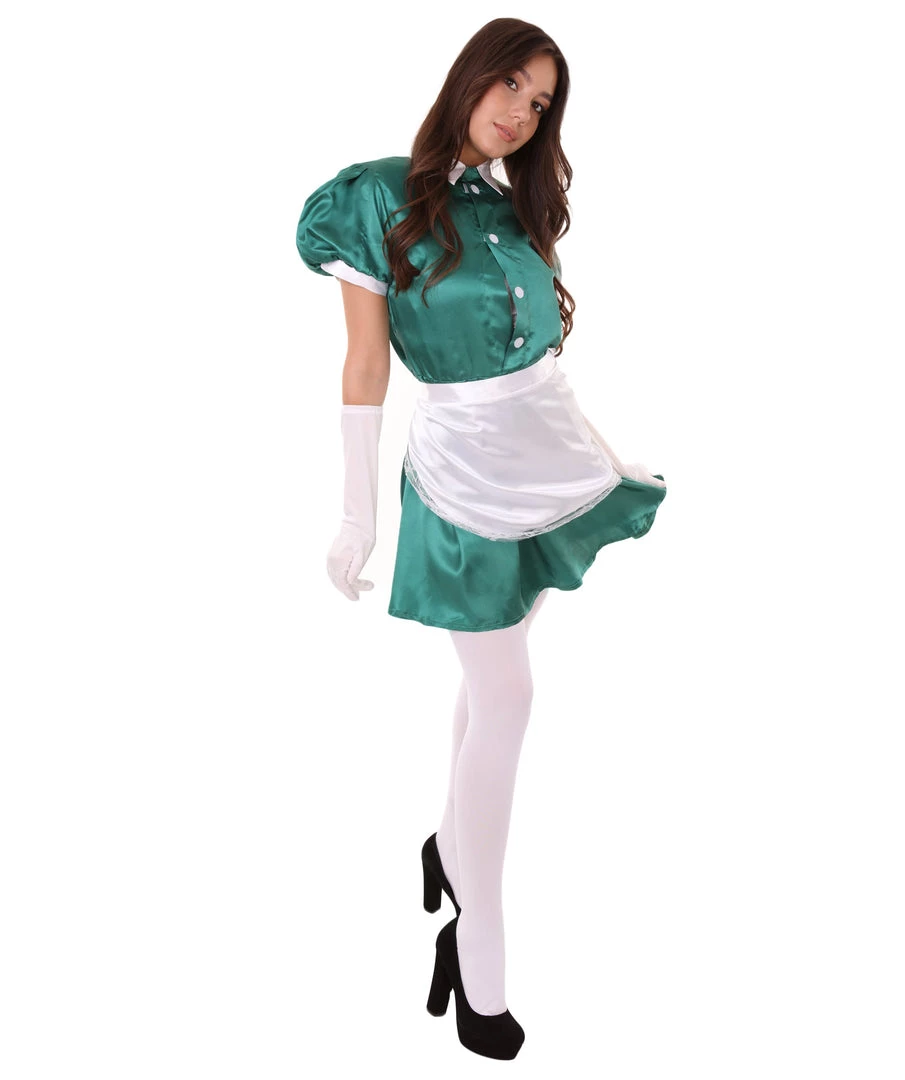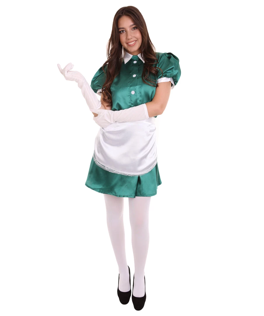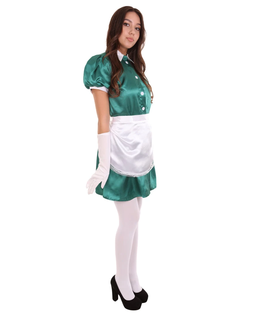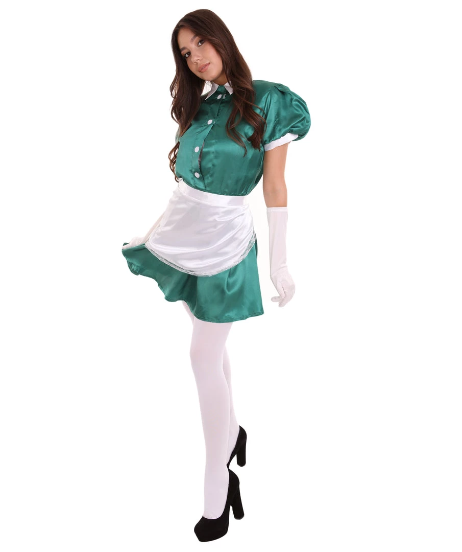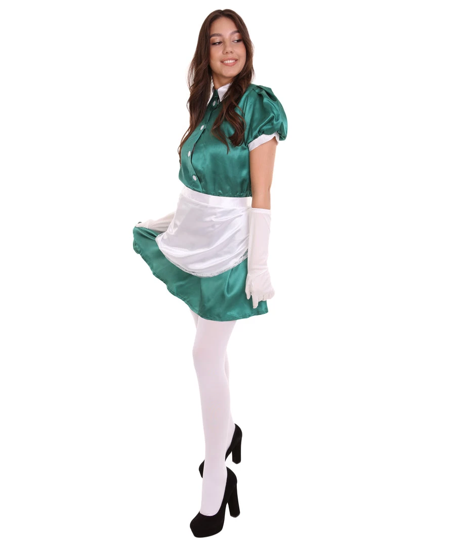HPO Adult Women’s French Apron Maid Uniform Costume | Dark Green Cosplay Costume