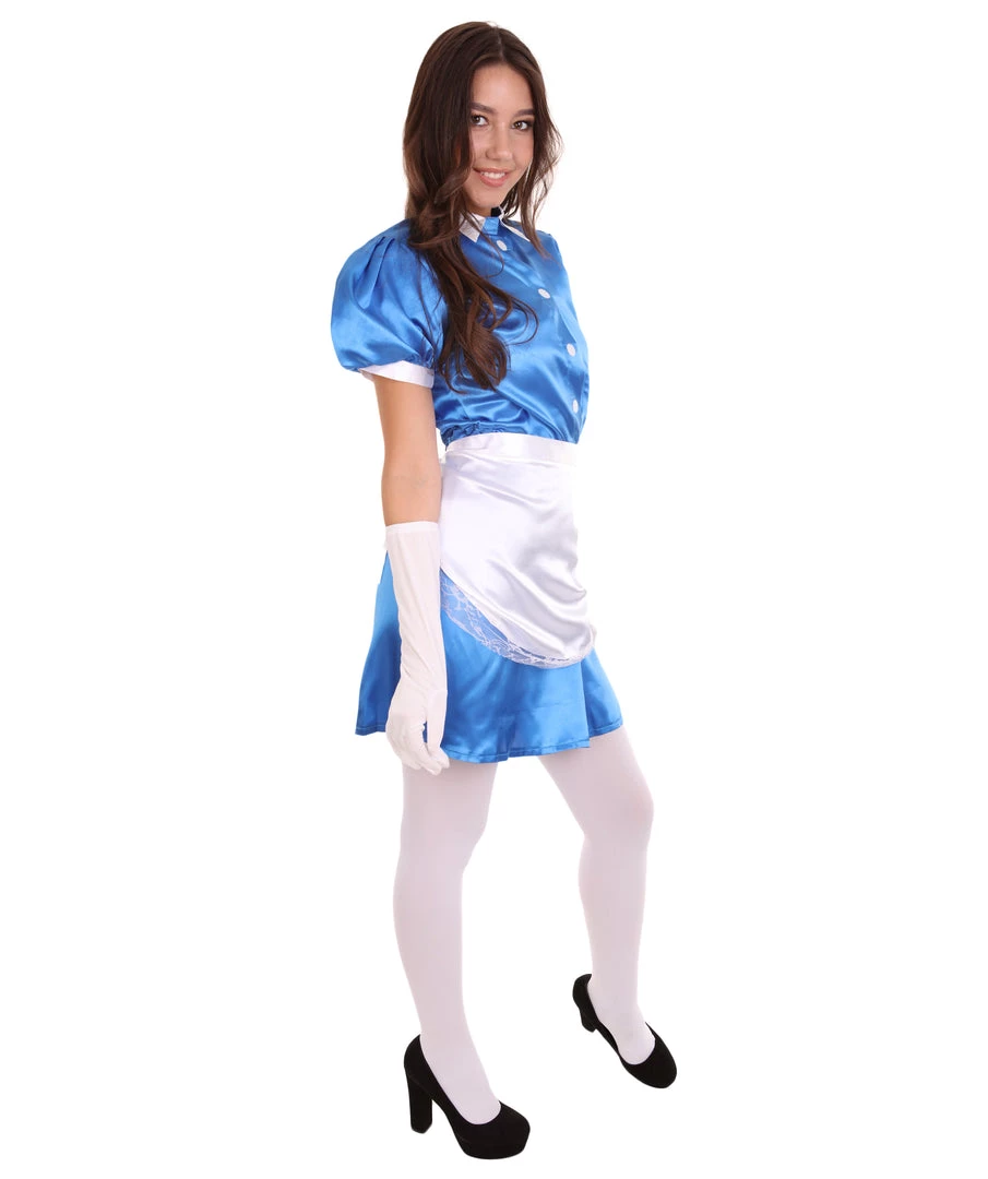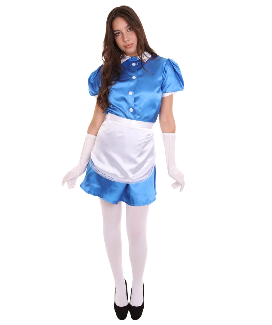 HPO Adult Women’s French Apron Maid Uniform Costume | Royal Blue Cosplay Costume