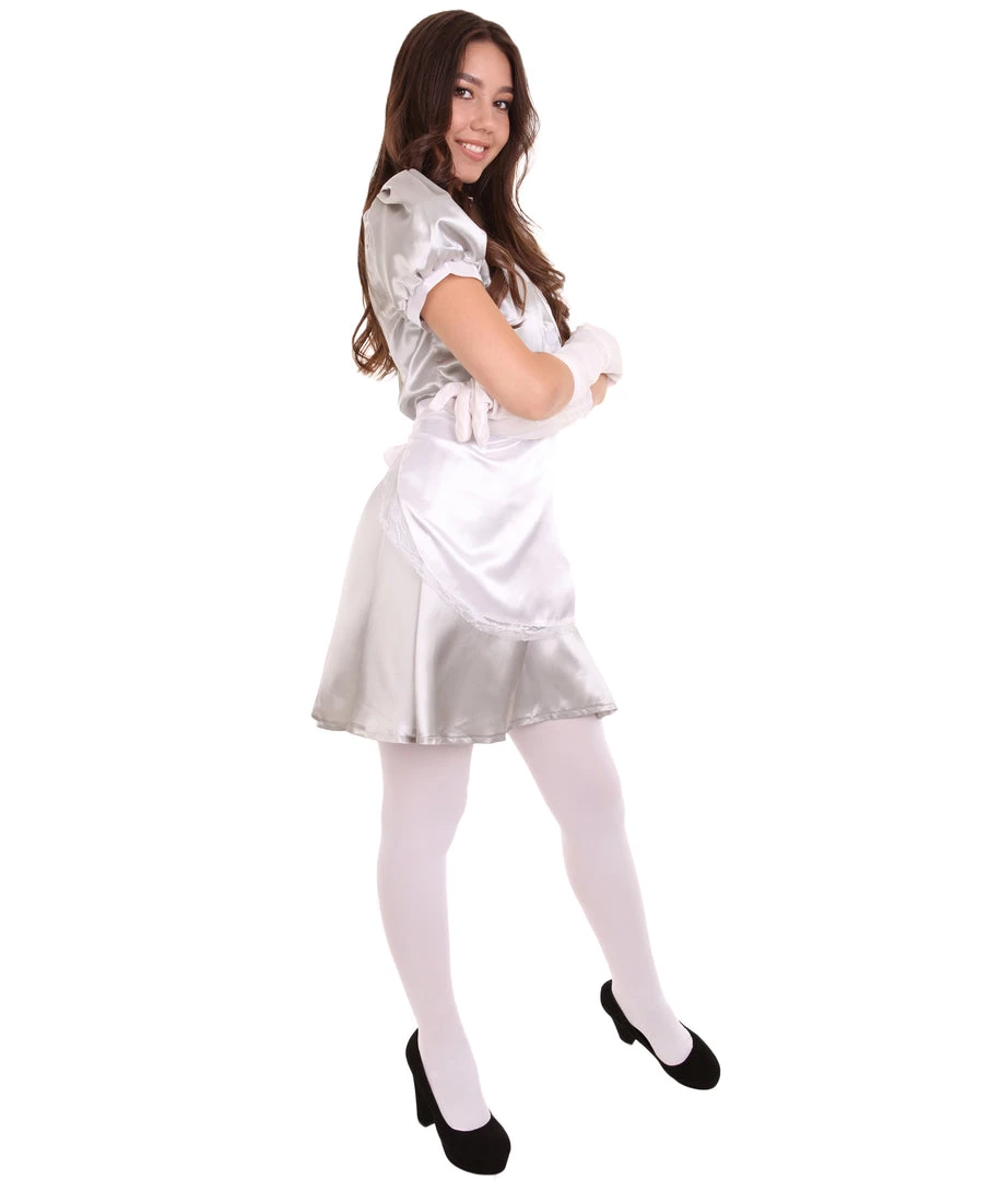 HPO Adult Women’s French Apron Maid Uniform Costume | Silver Cosplay Costume