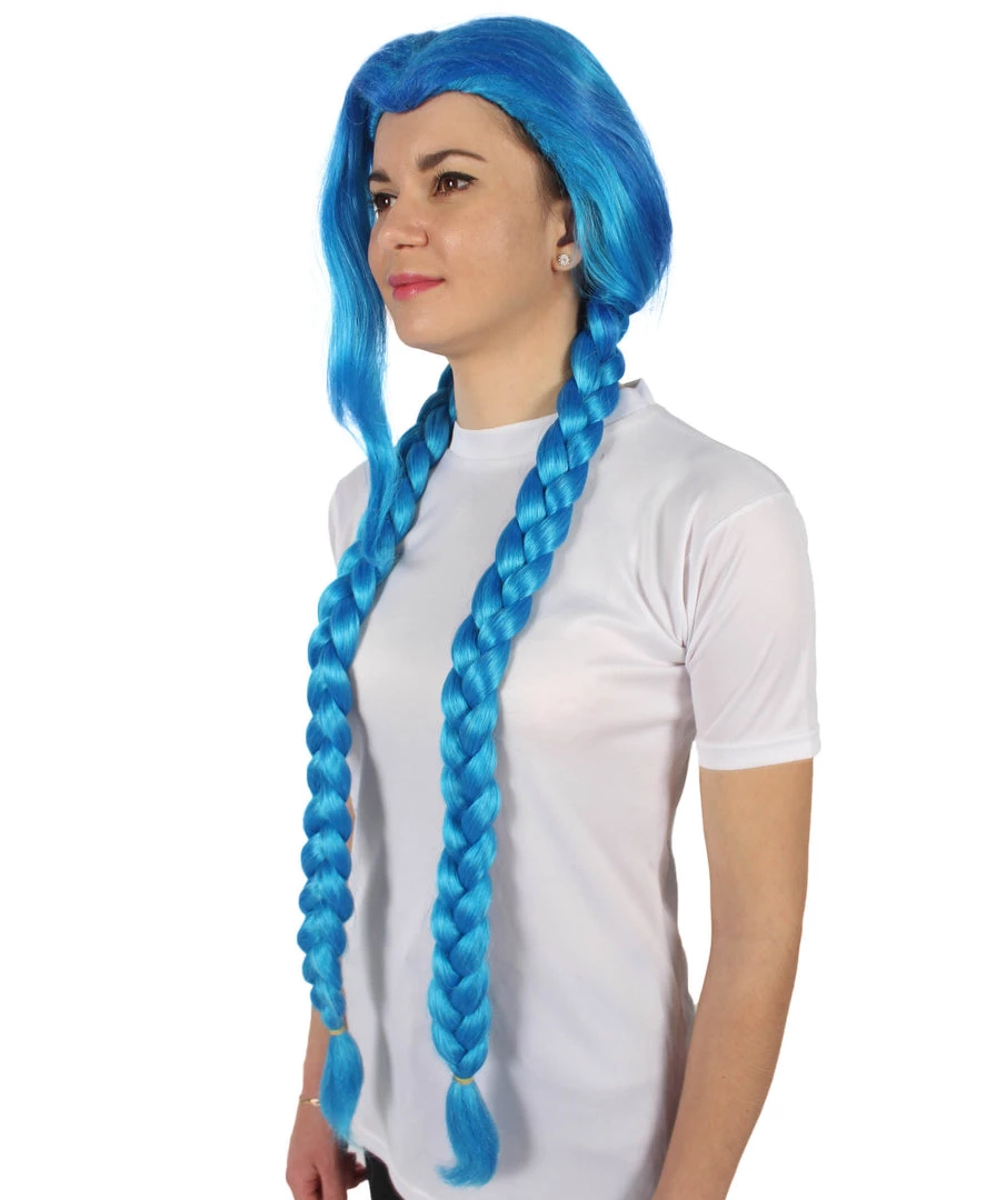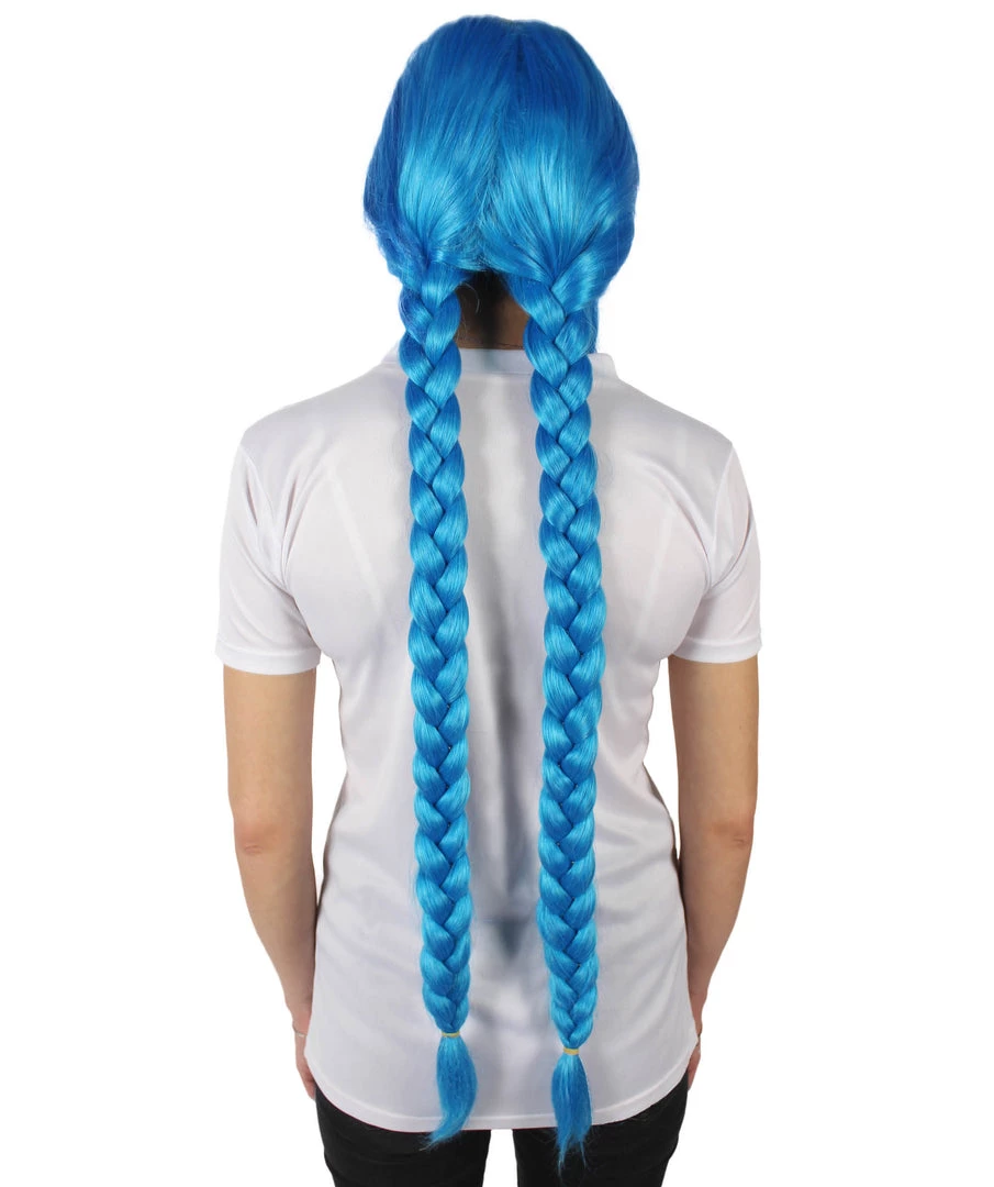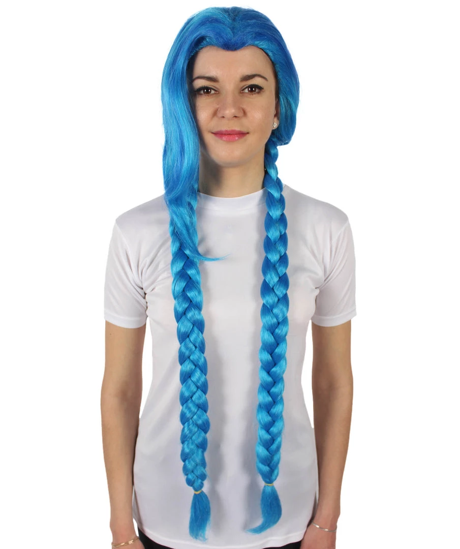 Once an innocent girl, later she turned into an impulsive criminal with a deteriorated mental state mostly due to the aftereffect of powerful serum used on her body to save her life. Superhuman strength with a capability of creating numerous contraptions and weapons in ease has made her a notorious criminal. Embody this eccentric character from a very popular online game universe that recently has created a highly acclaimed animated series with our new blue braided wig. Just like the original character from the series, this blue wig also comes with two very long braided blue ponytails and her iconic side bangs. It’s time to wreak havoc on the next Halloween, cosplay conventions, or anime group party. Plus, an adjustable cap of 18-22 inches in diameter can accommodate both adults and children.