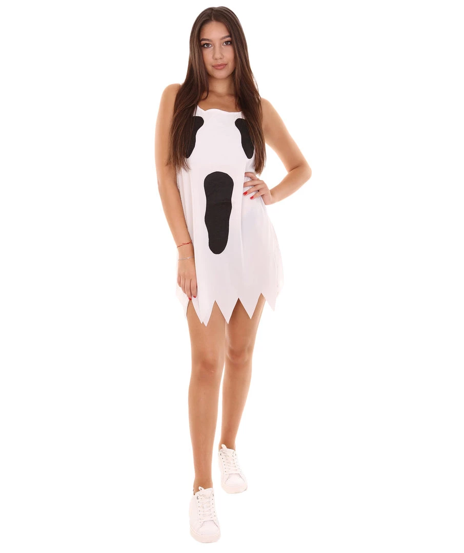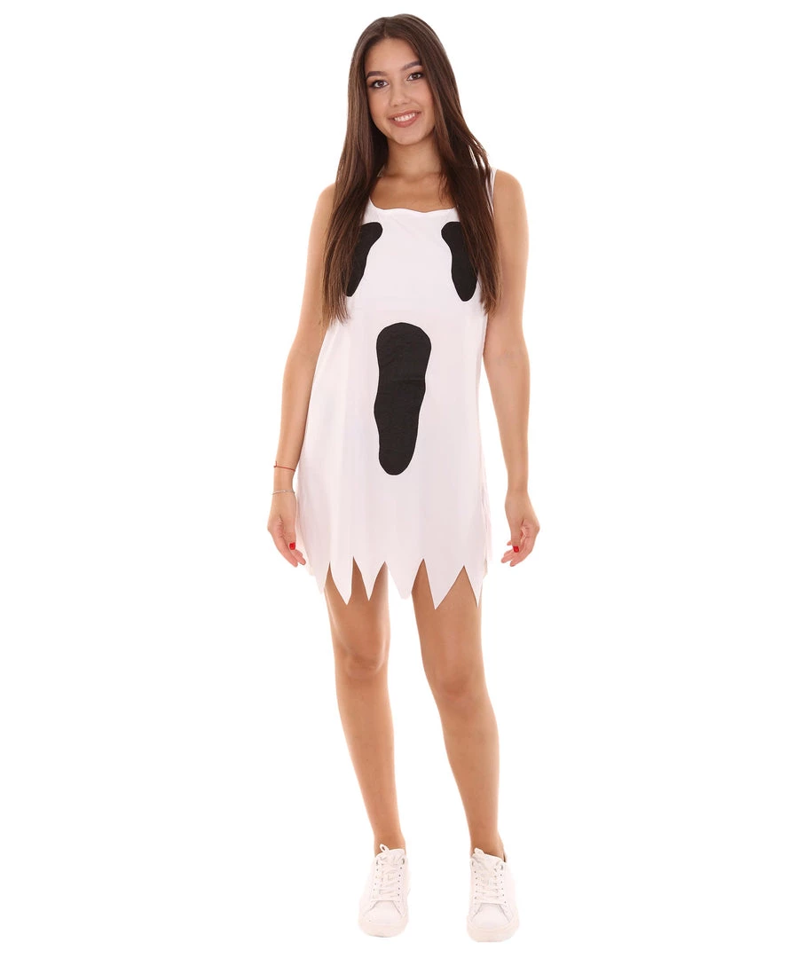 HPO Adult Women’s Jersey Ghost Dress Costume | White Horror Halloween Costume