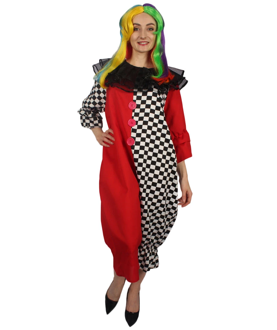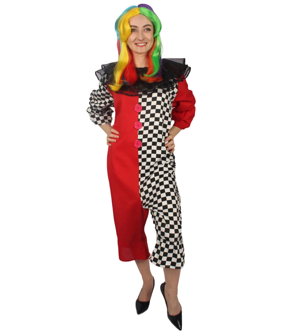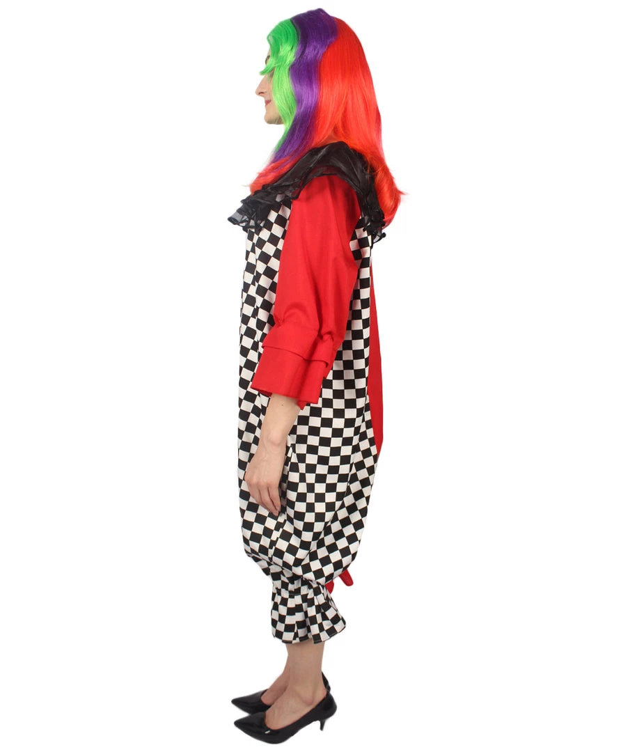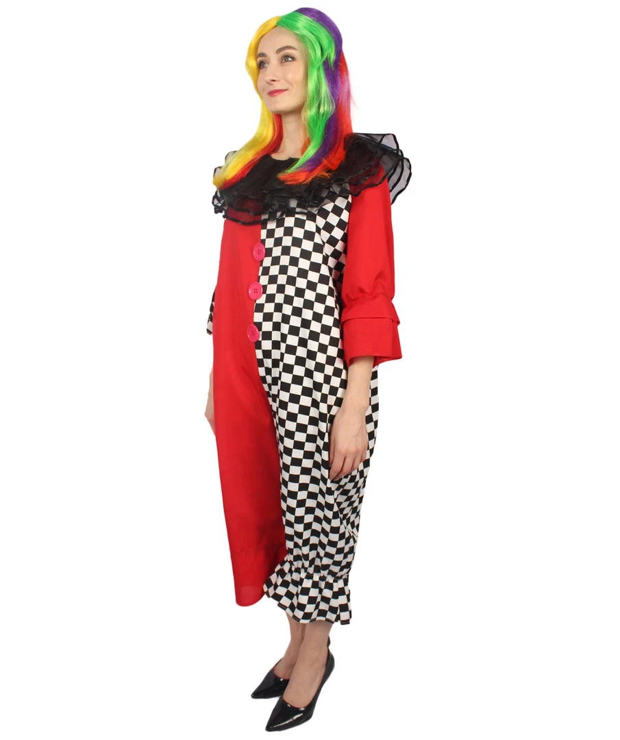 HPO Adult Women’s Naughty Clown Jumpsuit Costume | Multi Halloween Costume