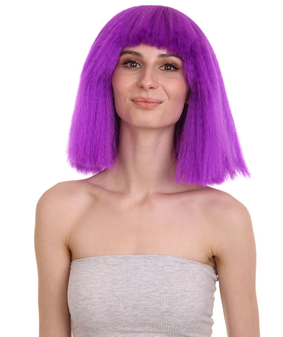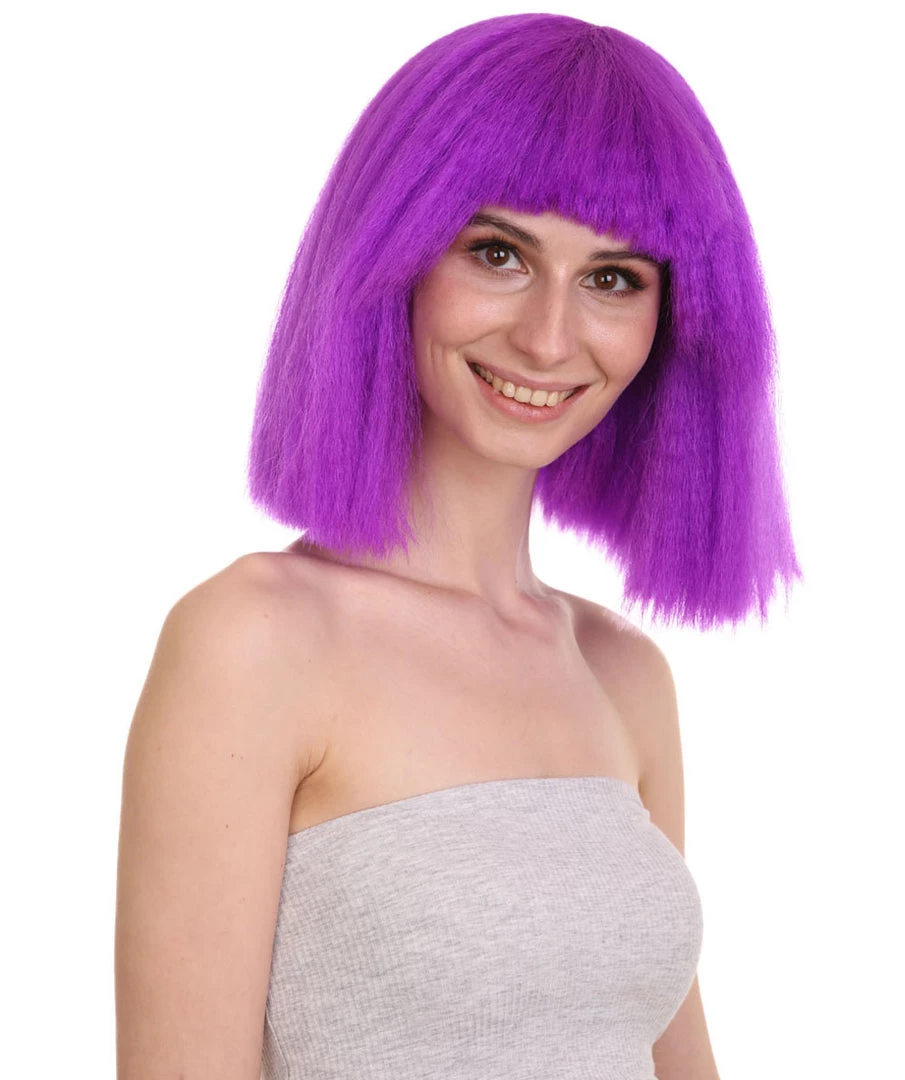 HPO Australian Singer Womens Wig | Neon Purple Celebrity Wigs | Premium Breathable Capless Cap Women’s