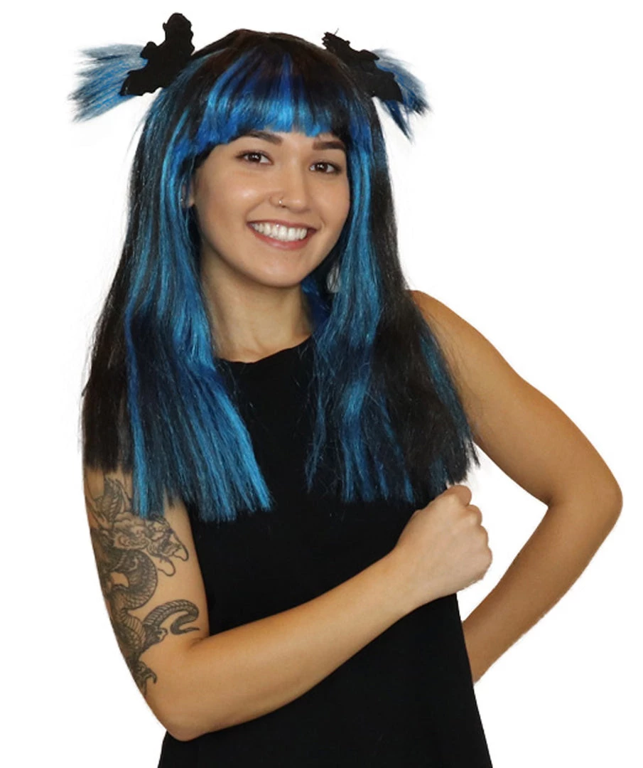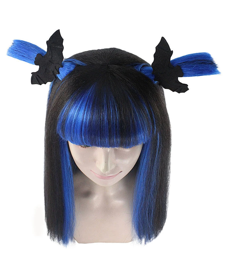 HPO Bat Black And Blue Wig | Medium Bob Cosplay Halloween Wig | Premium Breathable Capless Cap Women’s