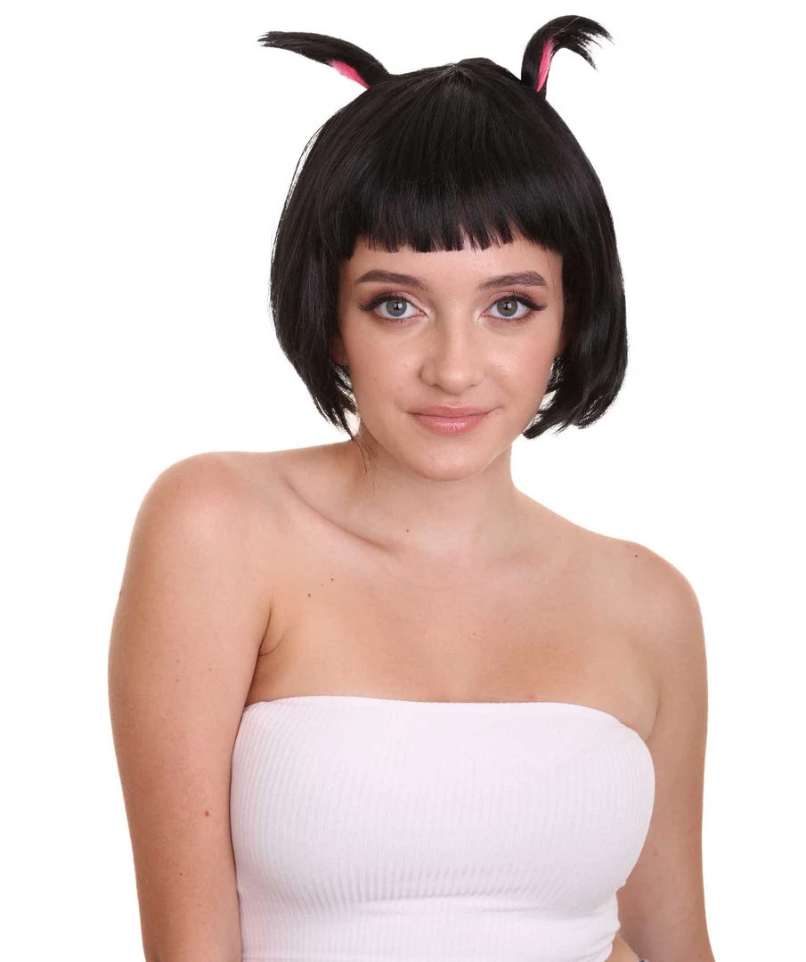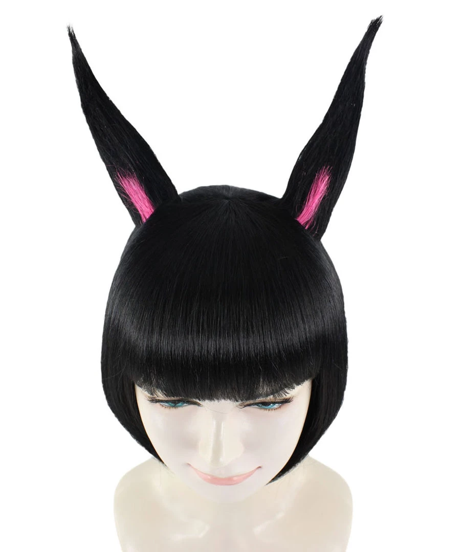 HPO Black Bunny Womens Wig | Easter Cosplay Halloween Wig | Premium Breathable Capless Cap