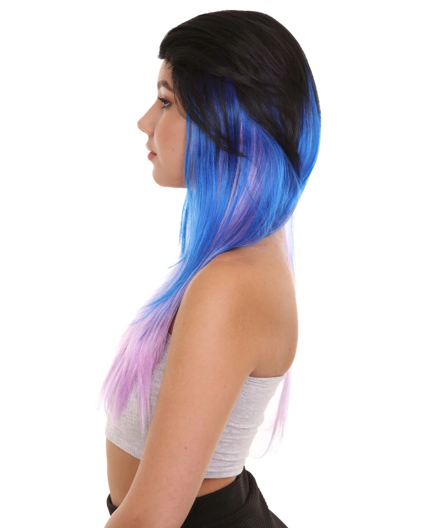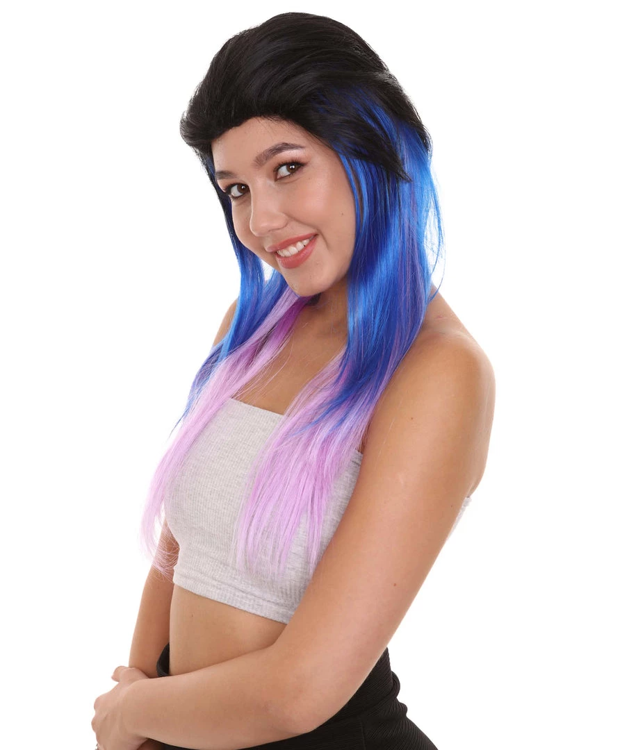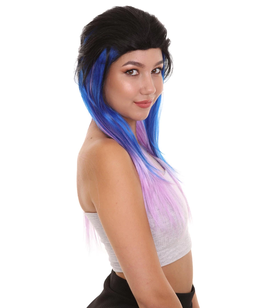 HPO Black Purple And Blue Raving Womens Wig | Cosplay Halloween Wig | Premium Breathable Capless Cap Women’s
