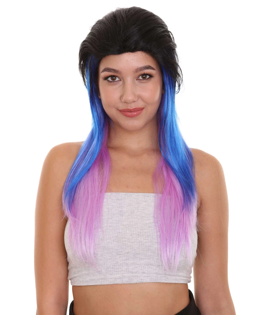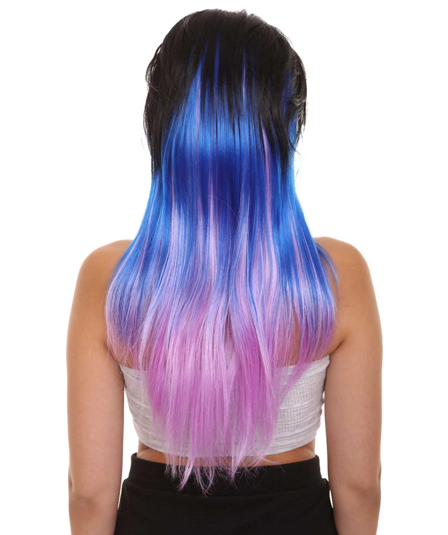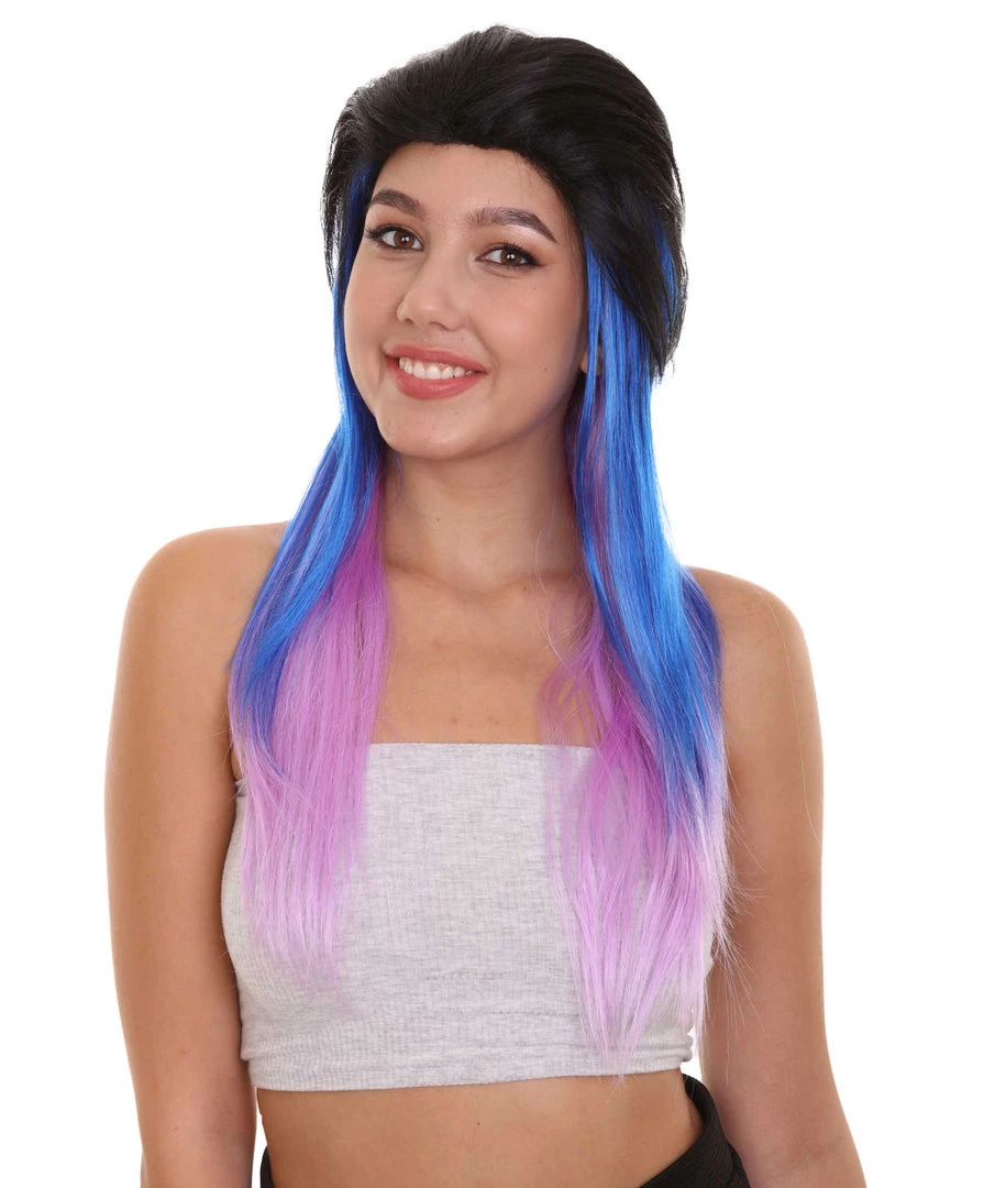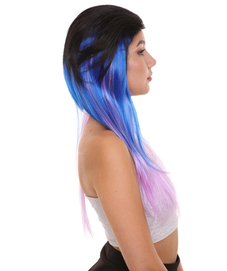 HPO Black Purple And Blue Raving Womens Wig | Cosplay Halloween Wig | Premium Breathable Capless Cap Women’s