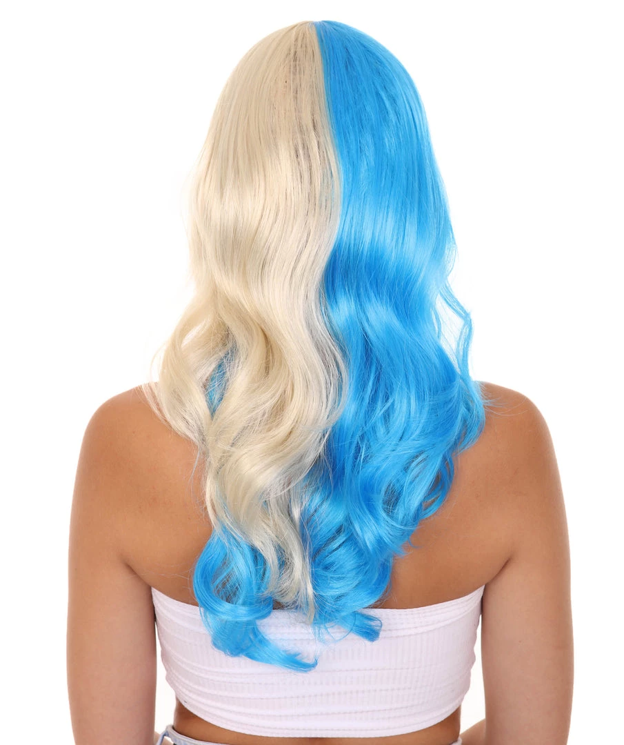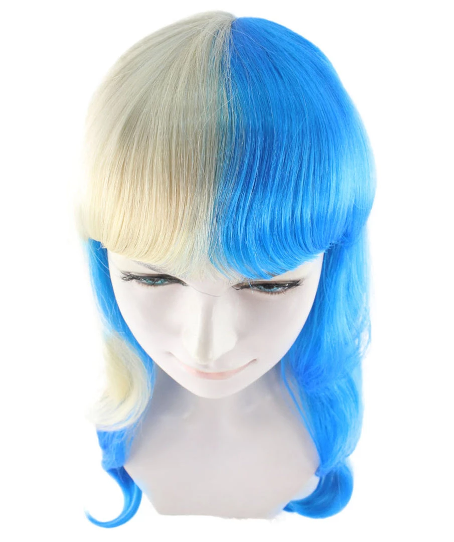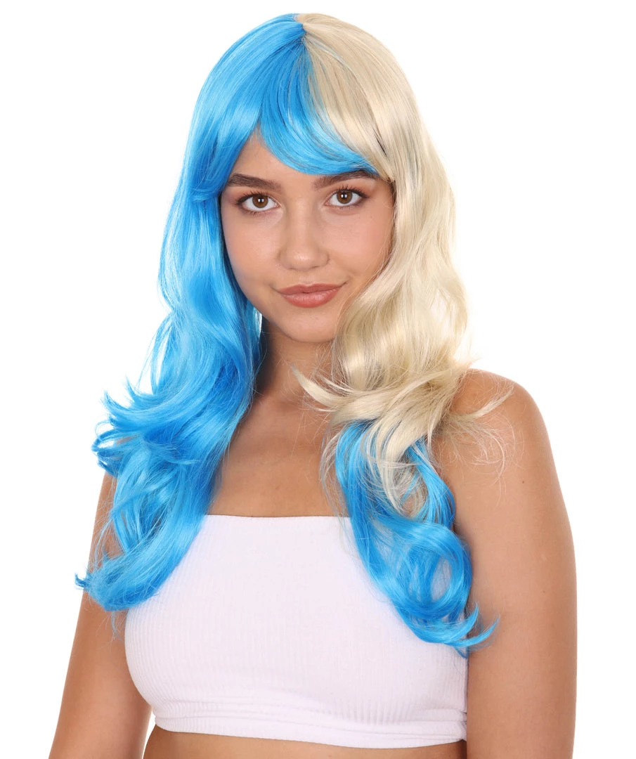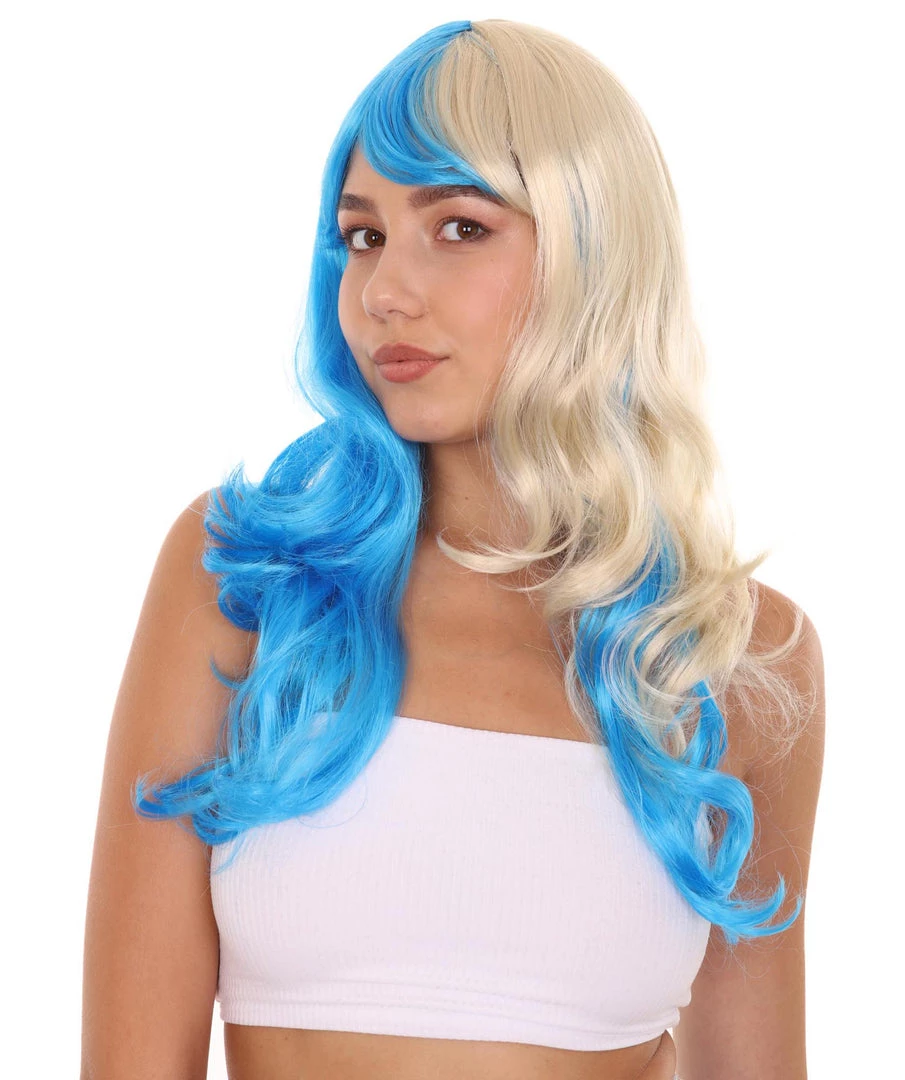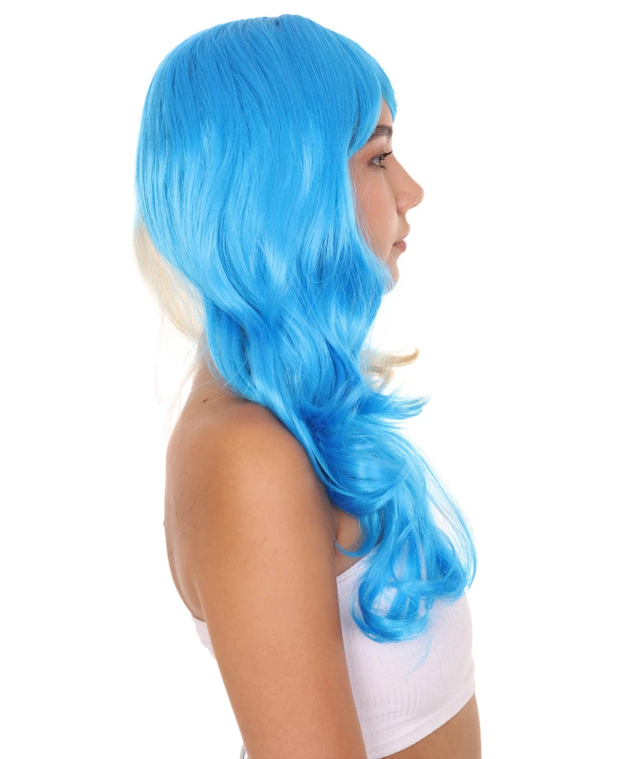 HPO Blonde And Blue Big Curly Womens Wig | Celebrity Famouse Wig | Premium Breathable Capless Cap
