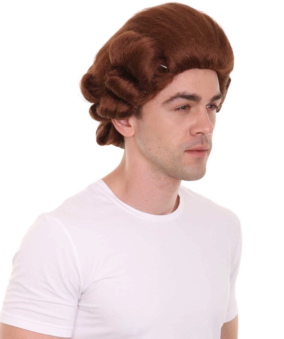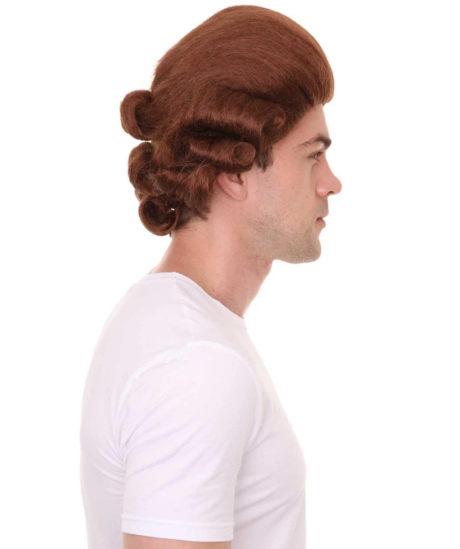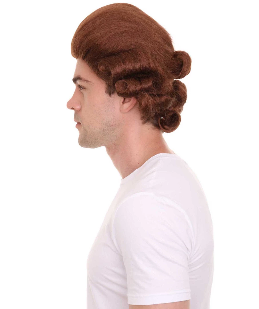 HPO Colonial Mens Judge Wigs | Brown Historical Wig | Premium Breathable Capless Cap