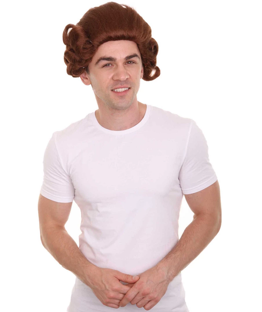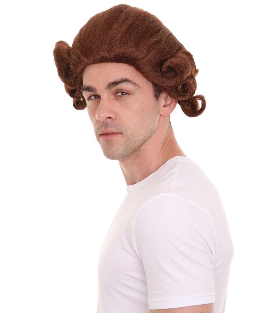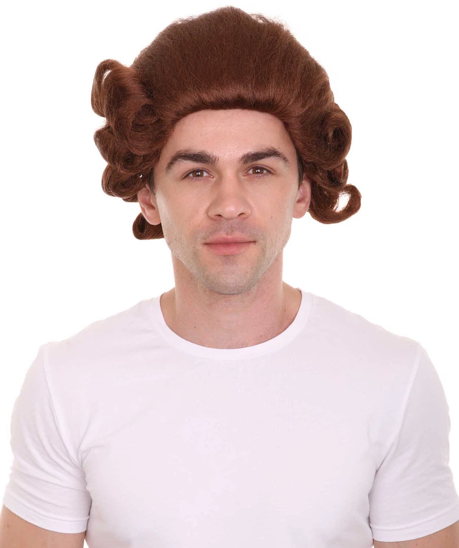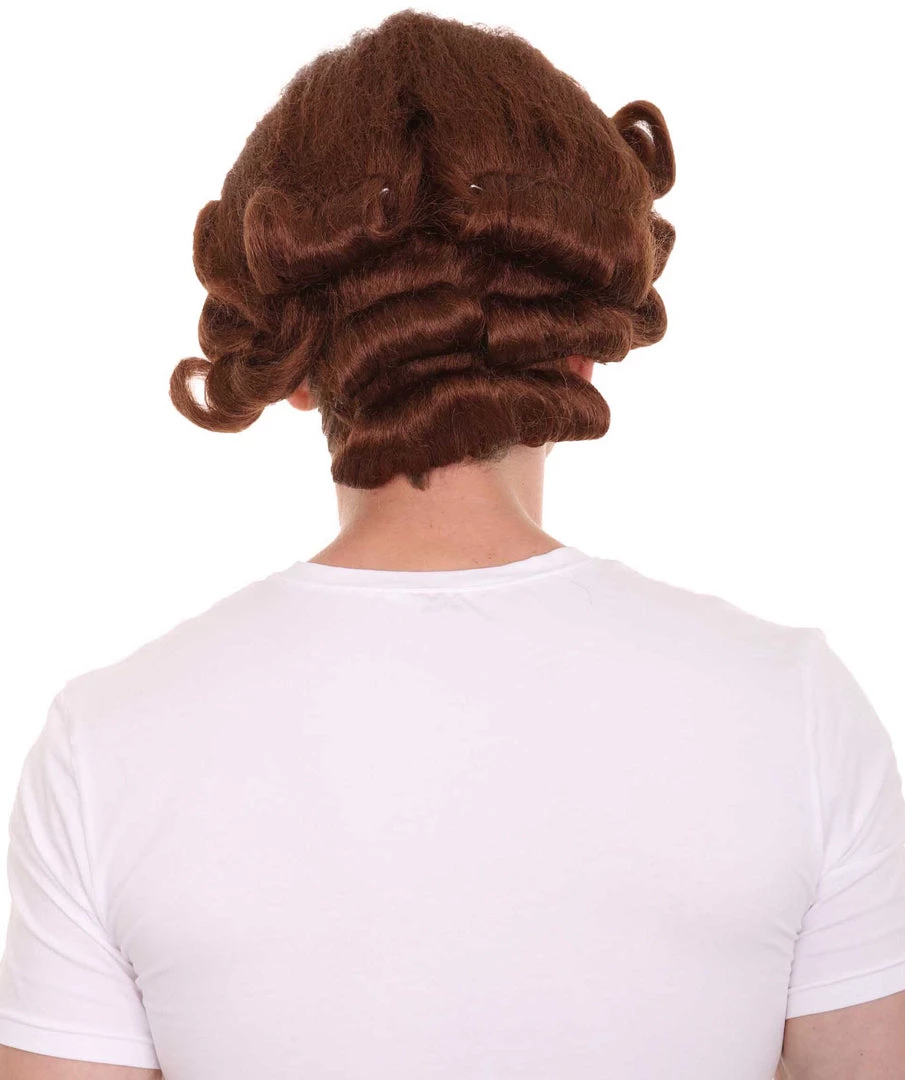 HPO Colonial Mens Judge Wigs | Brown Historical Wig | Premium Breathable Capless Cap