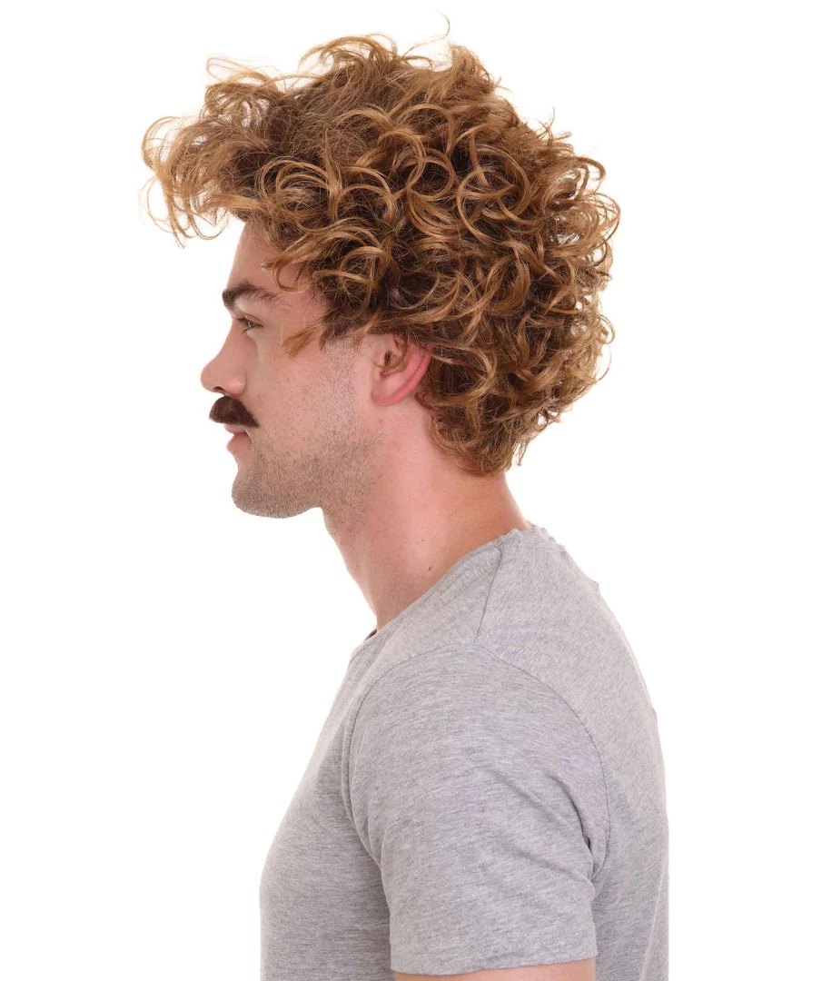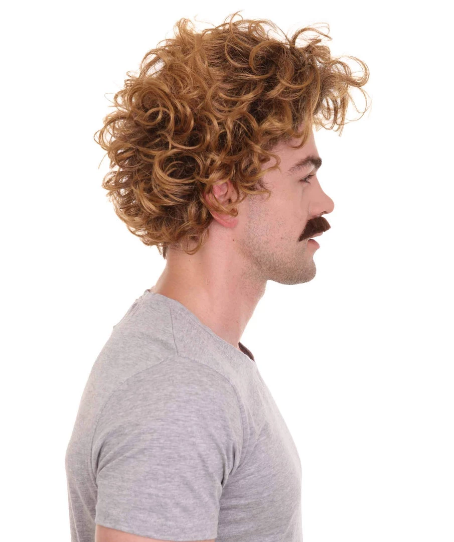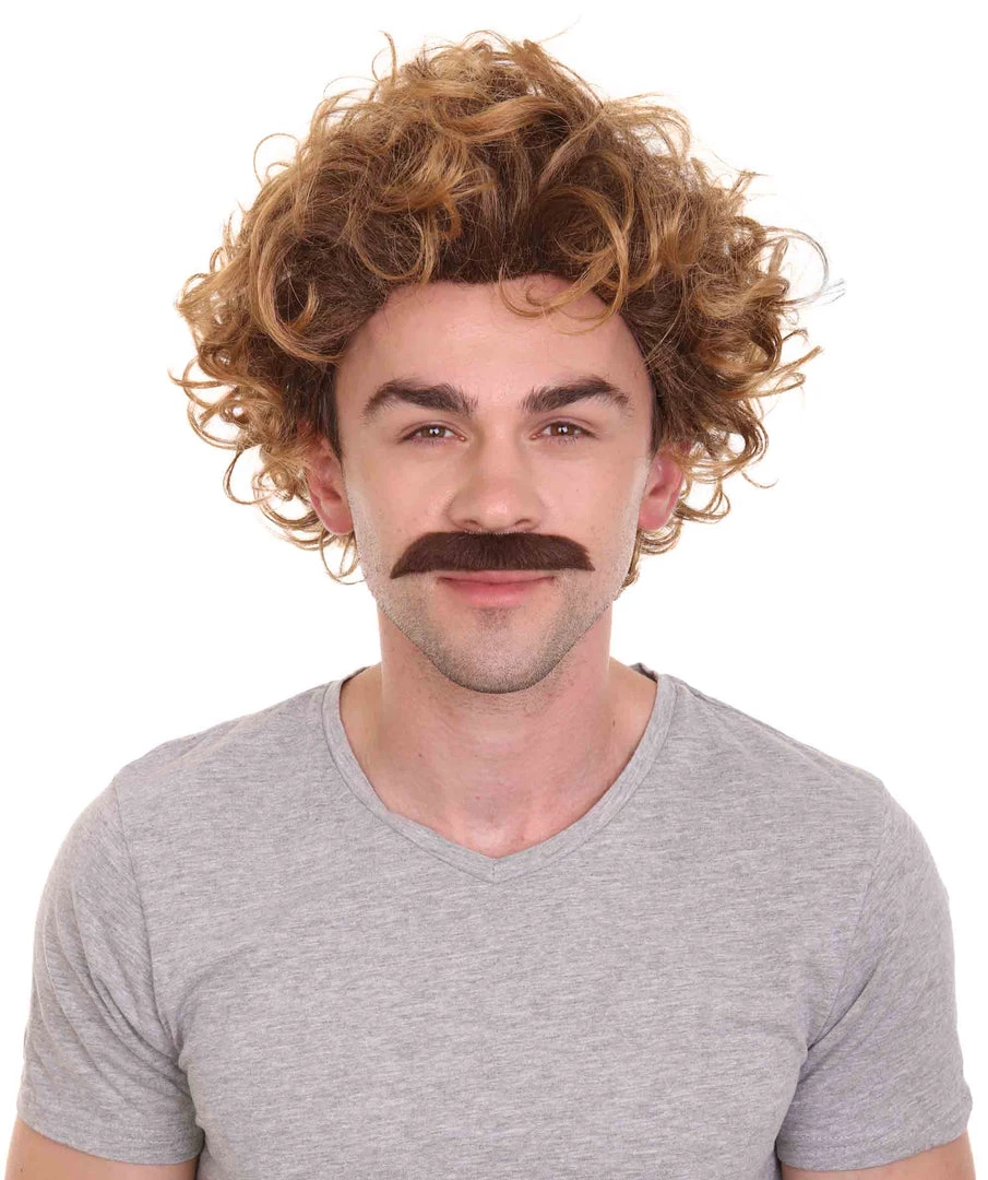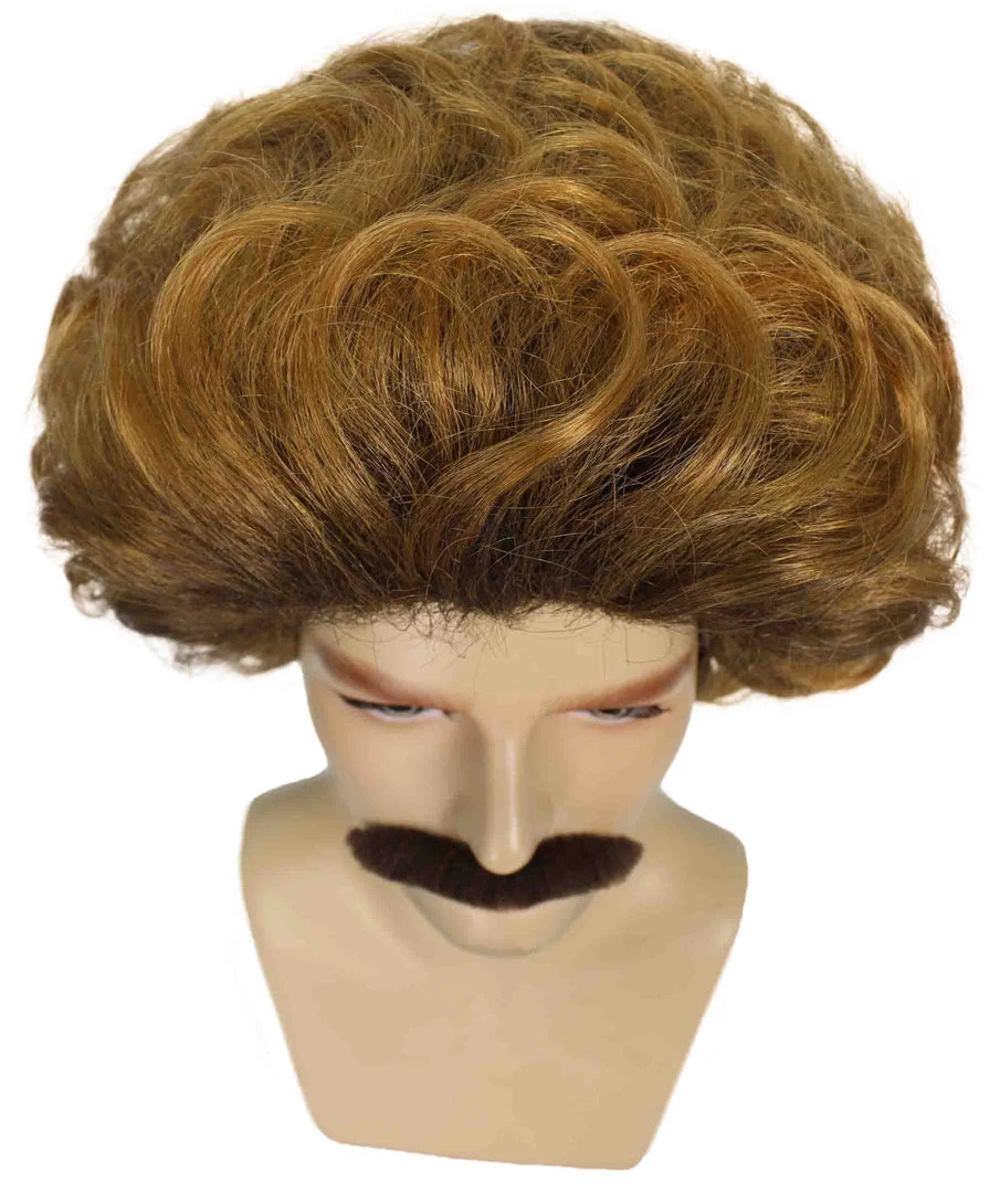 HPO Comedy TV | Mens Pro Wrestler Short Brown Curly Afro Wig And Mustache Men’s