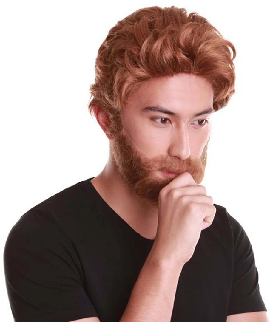 HPO Comic Superhero Brown Colour Wigs With Beard & Moustache For Men | Premium Breathable Capless Cap Men’s
