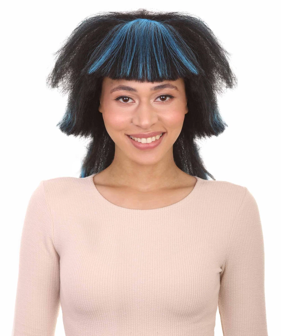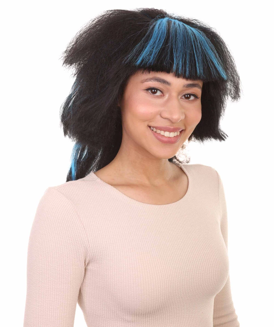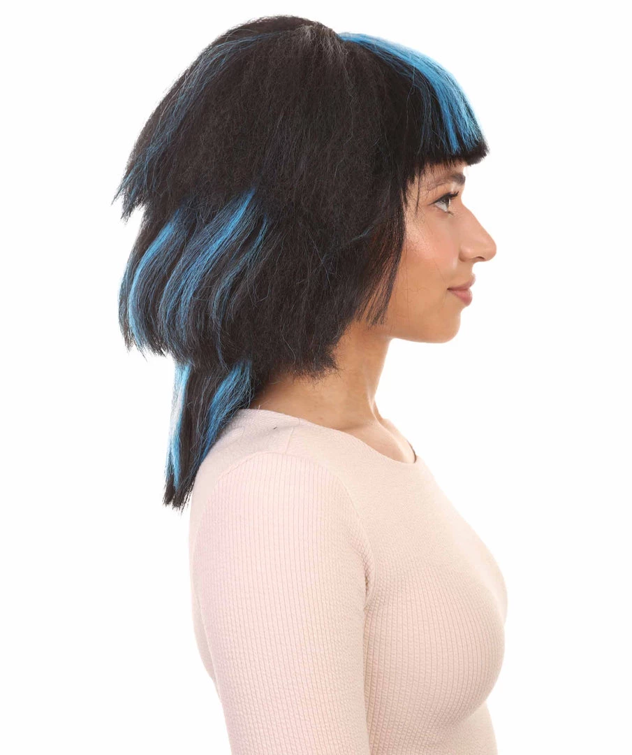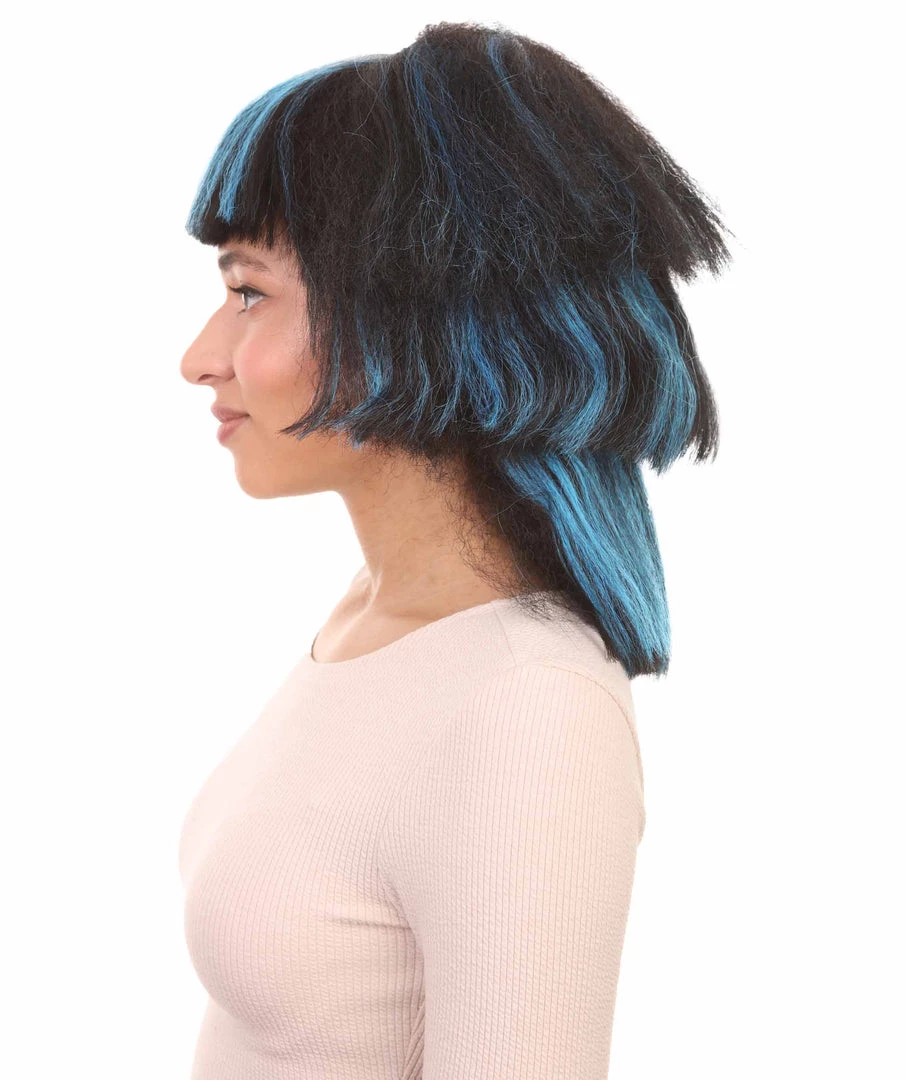 HPO Egyptian Stepped Layers Womens Wig | Blue & Black Bob Halloween Wig | Premium Breathable Capless Cap Women’s