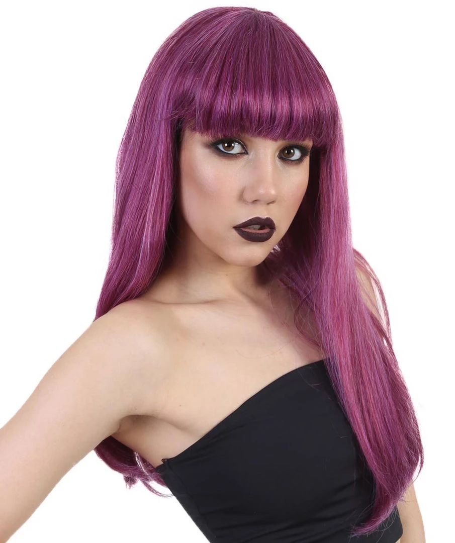Transform yourself into the spawn of a villain with our long purple wig. This character is a natural born leader and whether fighting for the forces of good or evil she is always in charge. Donning this wig will definitely secure your status as the boss of your gang for an evening.