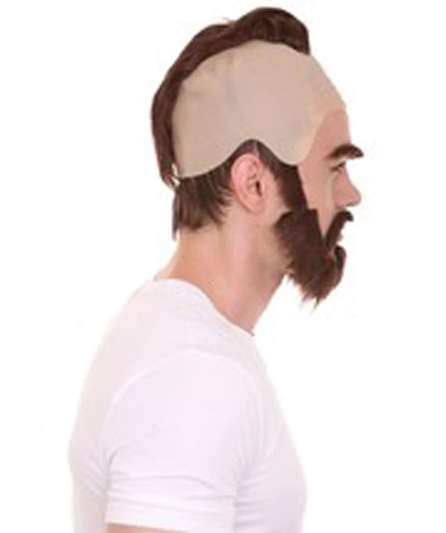 HPO Fighter Game Wig | Mens Short Length Brown Straight Mohawk And Beard Cosplay Wig Men’s
