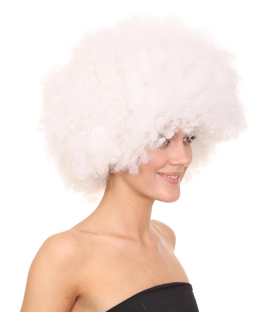 HPO Glow-In-The-Dark Unisex Afro Wig | White Jumbo Super Size Stage/Event Fancy Halloween Wig | Premium Breathable Capless Cap