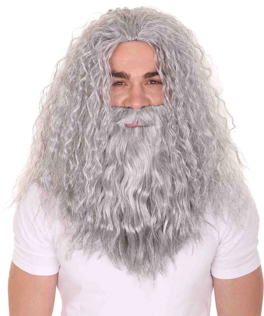 HPO Grey Men’s Wig | Wig & Beard For Cosplay Wizard | Premium Breathable Capless Cap